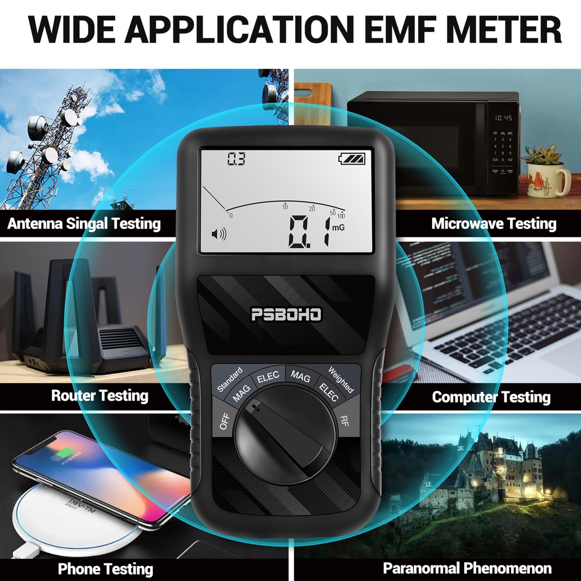 PSB0H0 EMF Meter, 3-in-1 Multi-Field Electromagnetic Radiation Detector for EF RF MF, WiFi Signal Detector, for Home&Office EMF Measurement Devices, Ghost Detectors, EMF Detector Tester