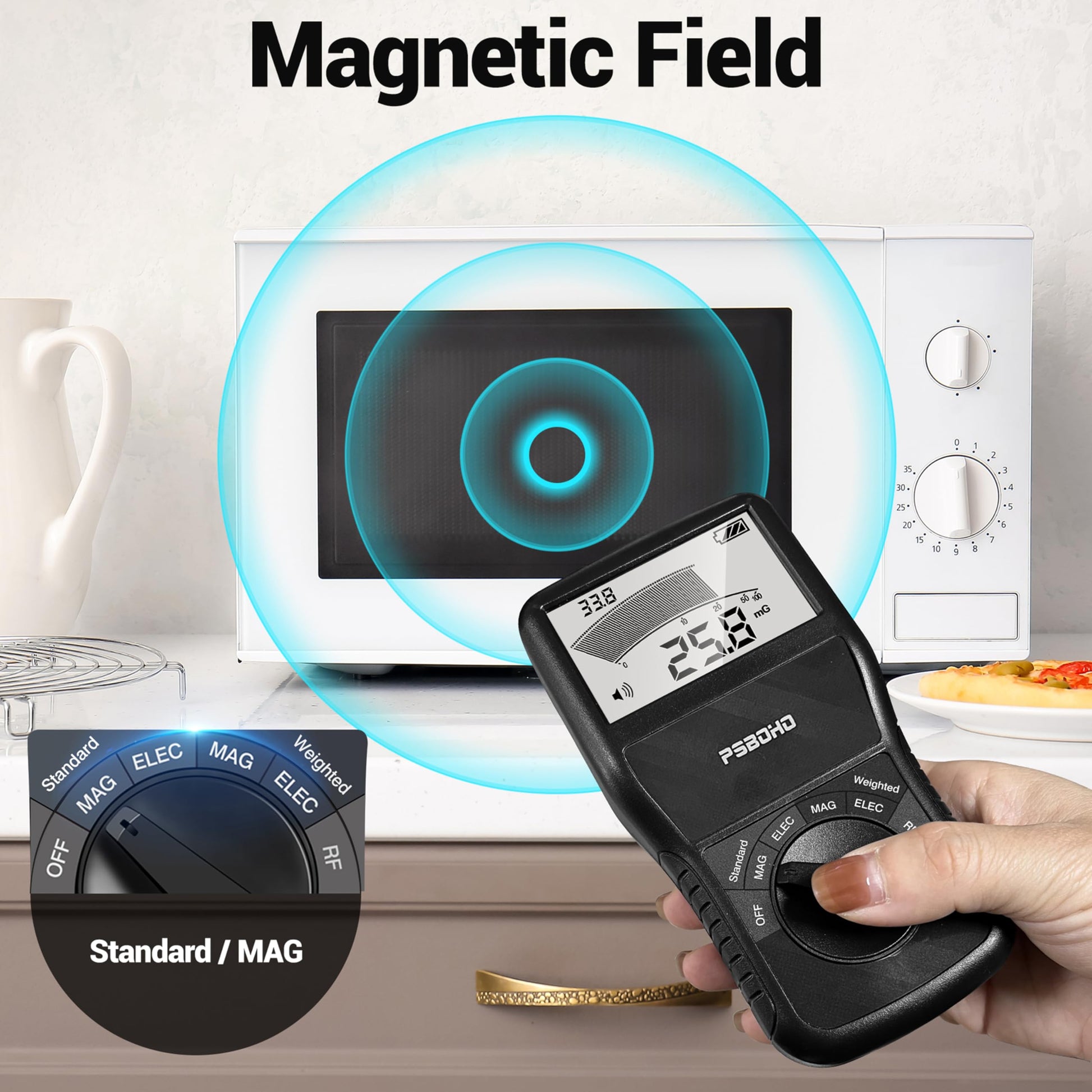 - 【3 In 1 EMF Meter】PSB0H0 multi-field EMF Meter is a small and compact detector that can measure electromagnetic field (3-axis), electric field, and RF strength.