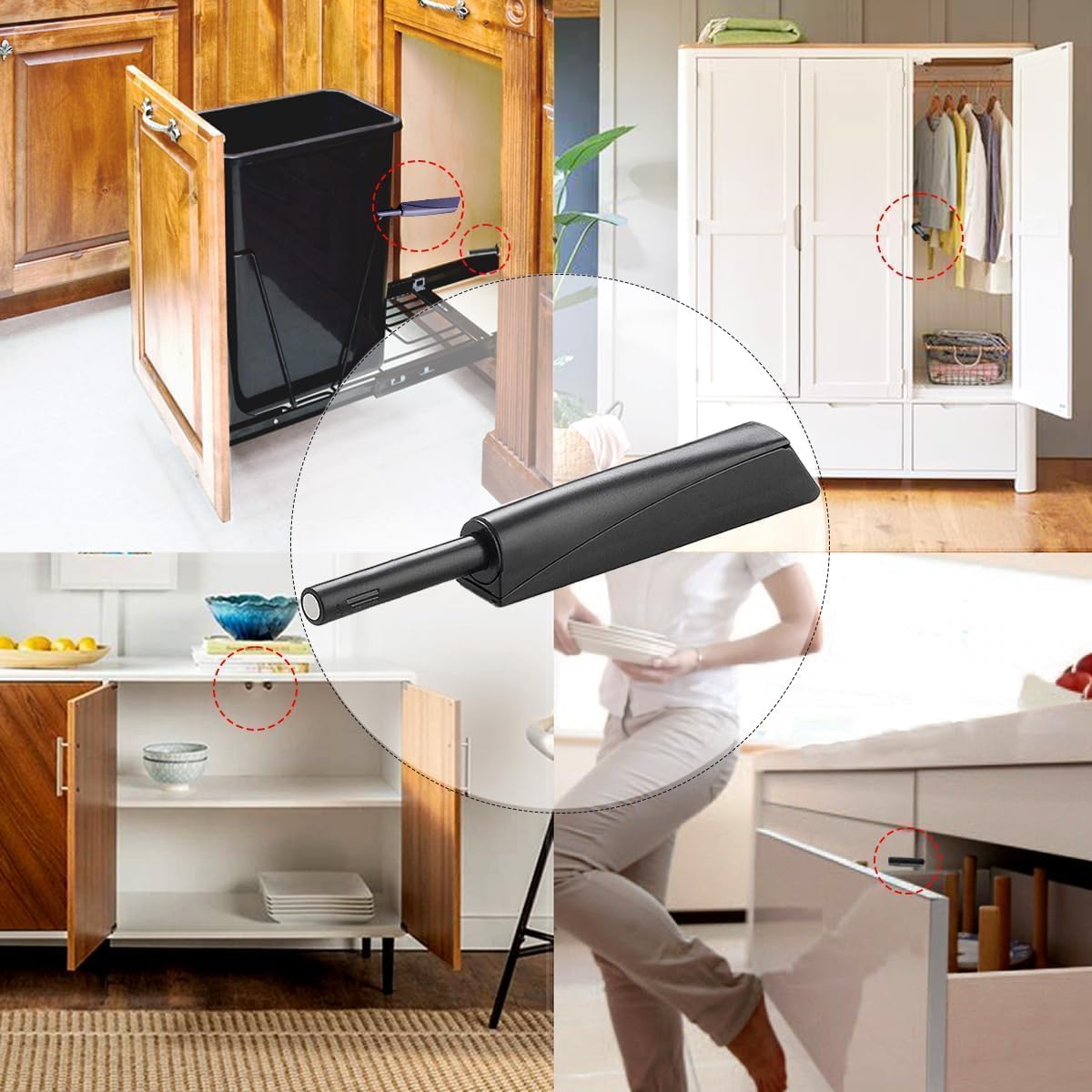 - Secure Closure: Our push to open system features a long-stroke design with a built-in magnet that ensures a secure close point, preventing "drifting open" doors. You can rotate the magnetic tip of the inner core left or right to adjust its extra extension length of 2-9 mm to fit the gap of the door.