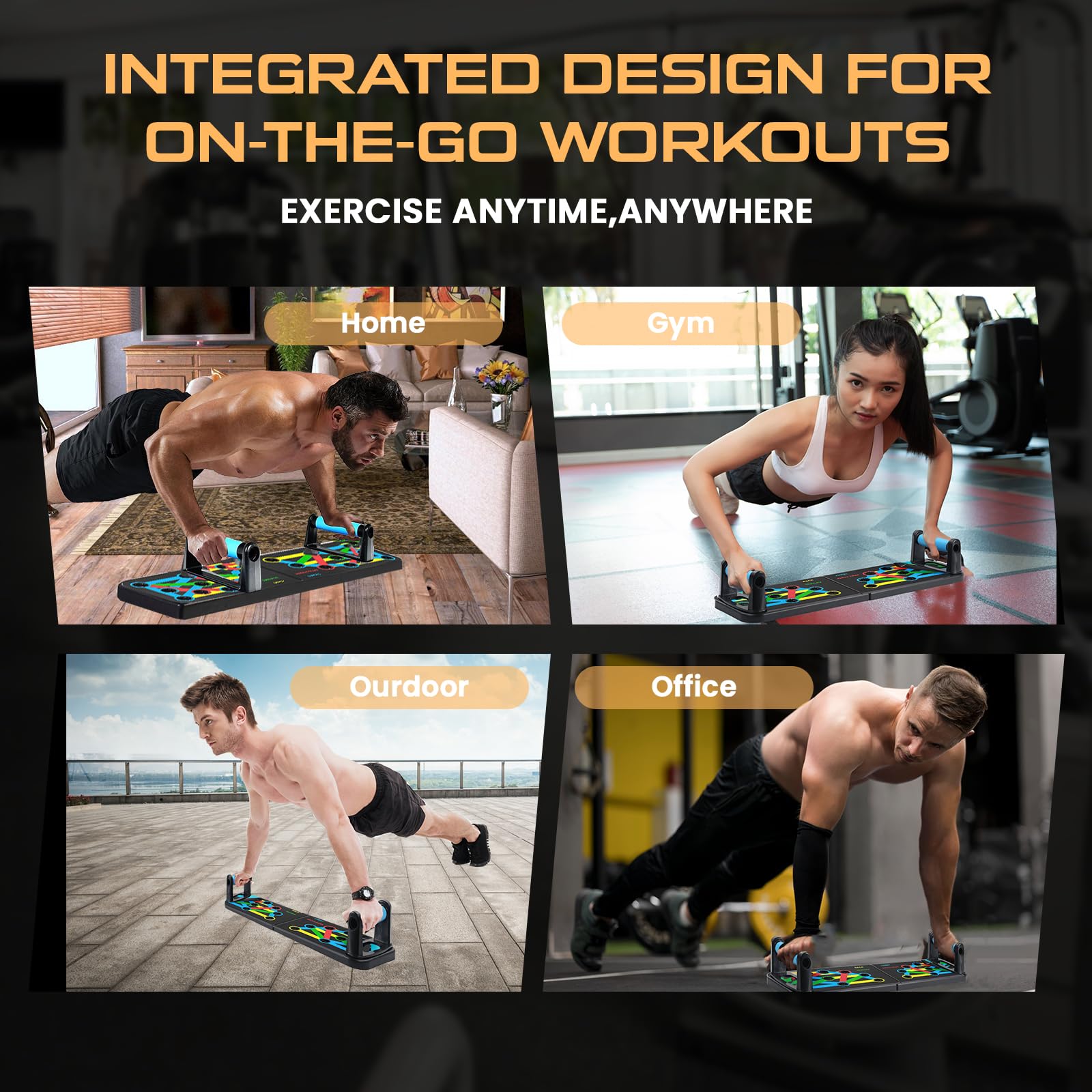 - INTEGRATED DESIGN: Our strength training equipment is made with an upgraded integrated design which makes it stable, sturdy and durable. It can be used anywhere anytime. The pushup handles are strong and easy to install. The perfect push up board has color coded guidelines to exercise targeted muscle groups like pectorals, abdominals, latissimus dorsi, chest and arms. Experience a new level of fitness goals with our push-up board.