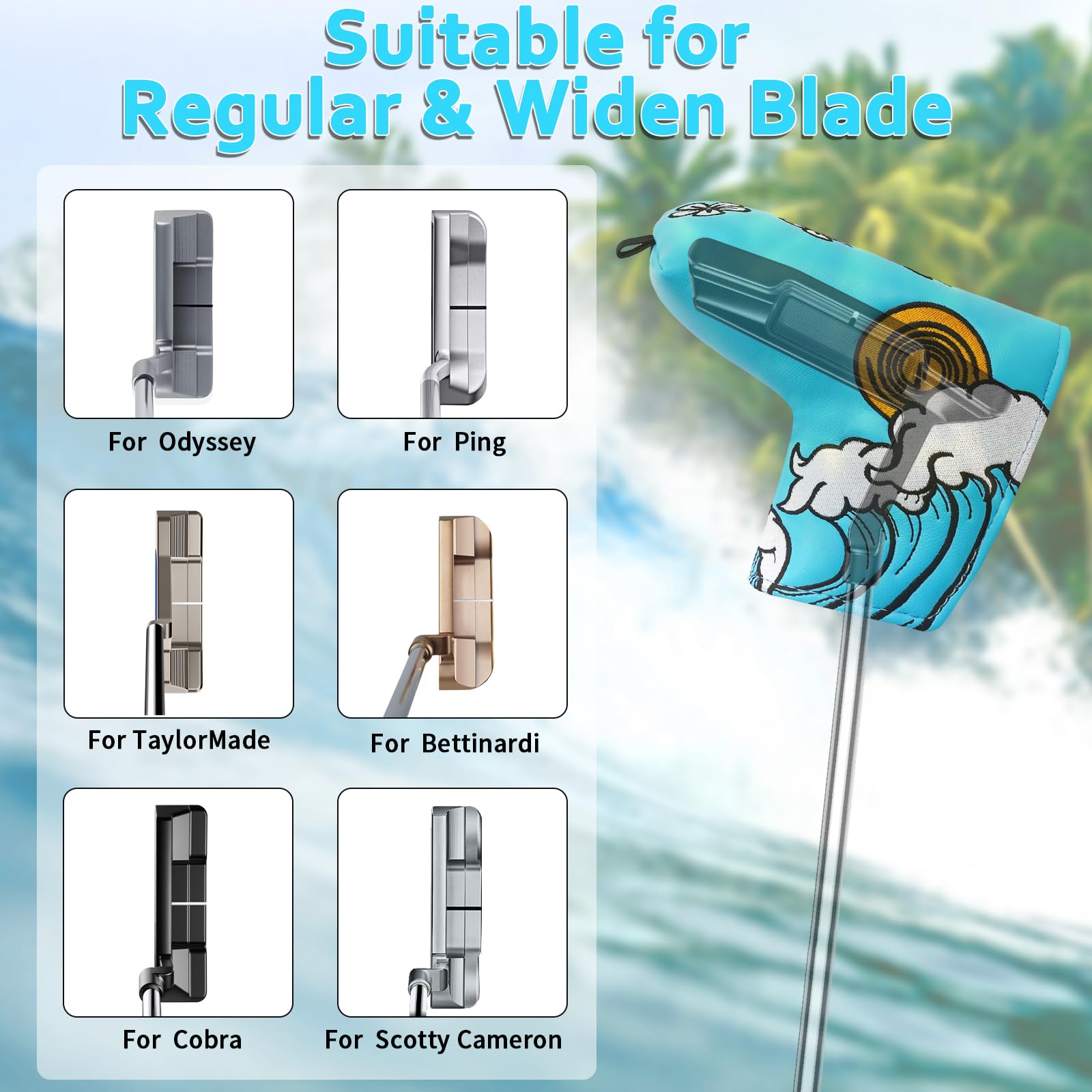 Putter Headcover, Blade Putter Cover Magnetic Blue Sea Wave Golf Putter Head Cover