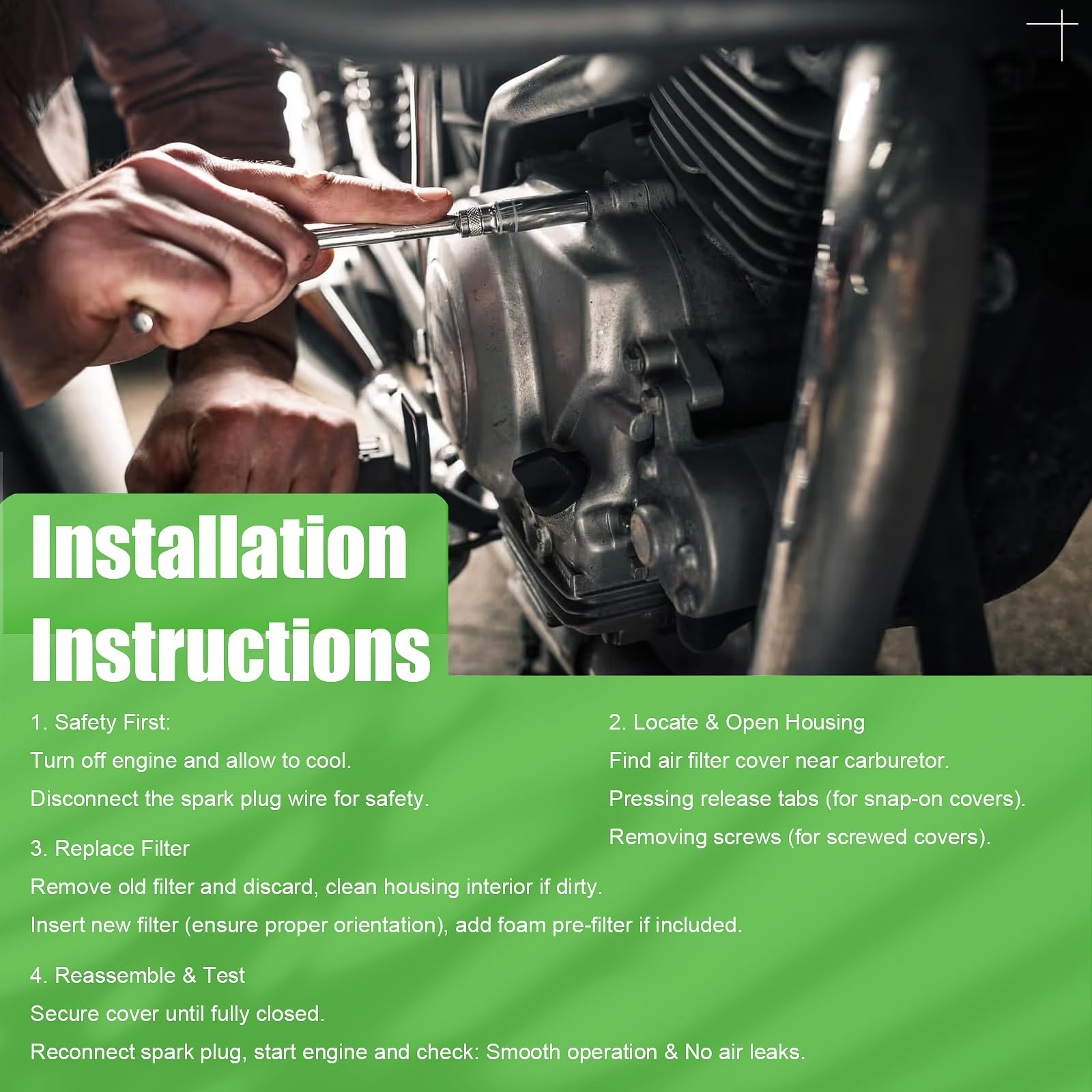foam pre filter and filter just like two doors against dust, protecting engine.