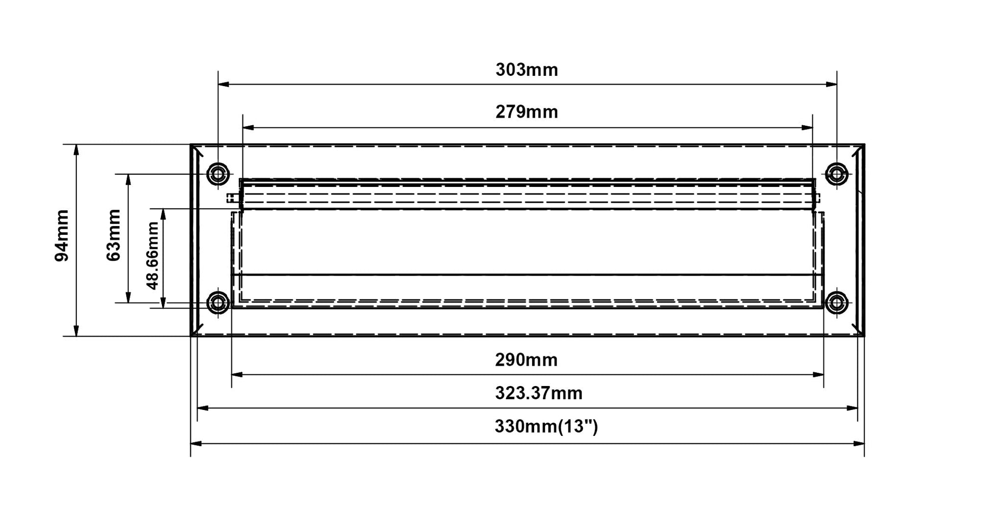 - Overall length 13" x 3.625"; opeing indoor 11" x 2-1/4"