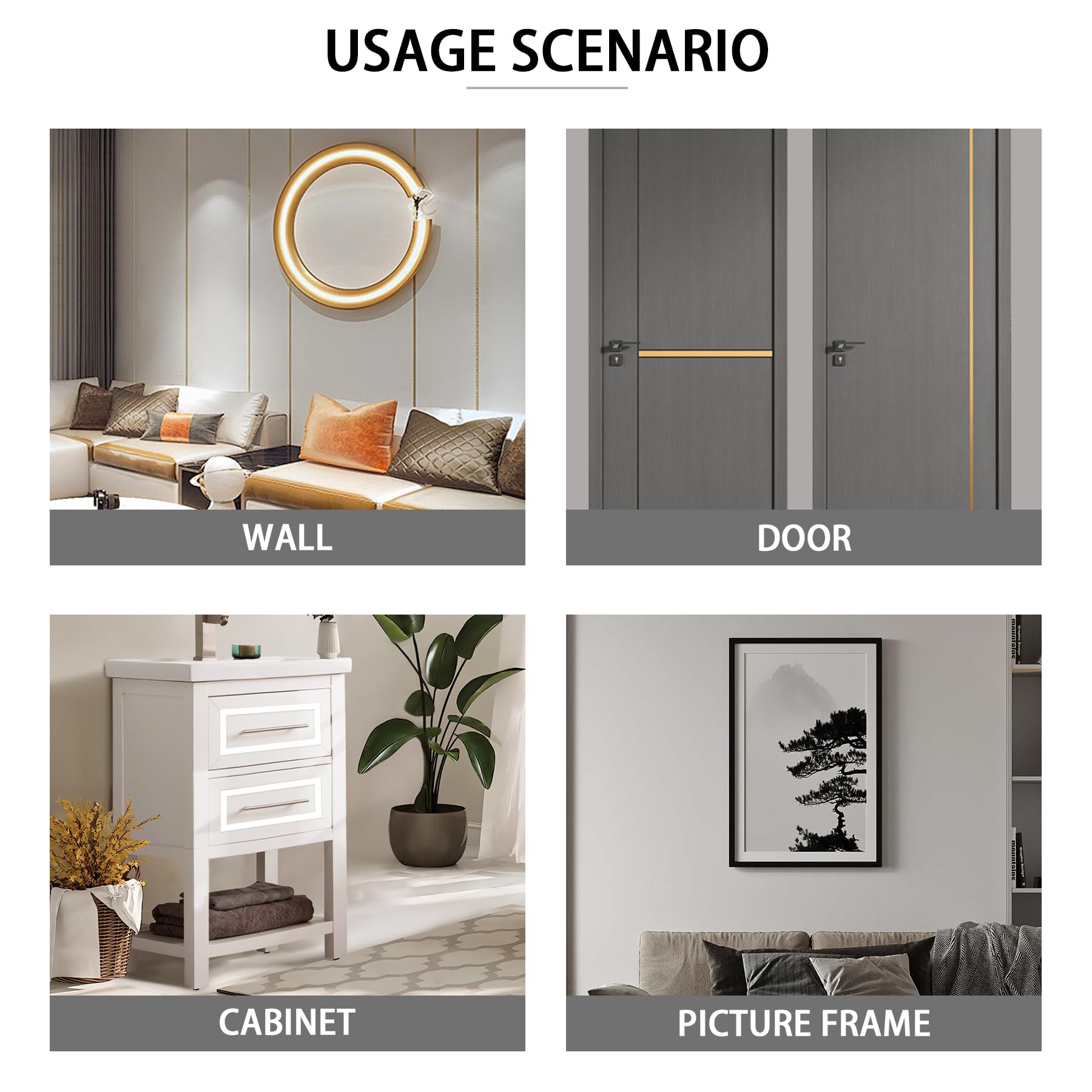 - Multi Purpose & Aesthetics: This trim can be used not only for wall edges, but also for mirror frames, wall art, cabinets, ceilings, etc. It can enhance the aesthetics of your living room, bathroom, bedroom, or office, and add a sense of hierarchy and artistry to the space