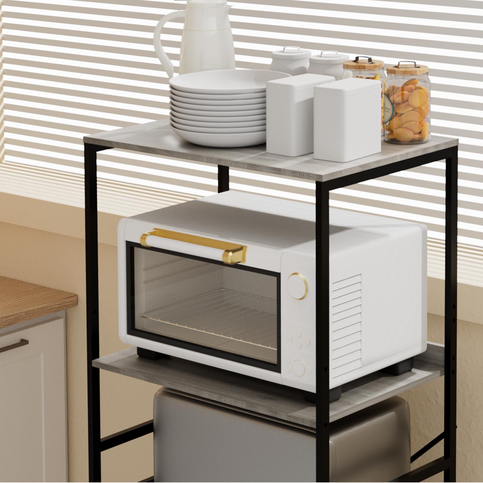QieerHior Mini Fridge Shelf Mini Fridge and Microwave Stand Over Mini Fridge Storage Rack Height Adjustable Microwave and Fridge Stand Suitable for Dorm, Kitchens, Offices, Modern Gray