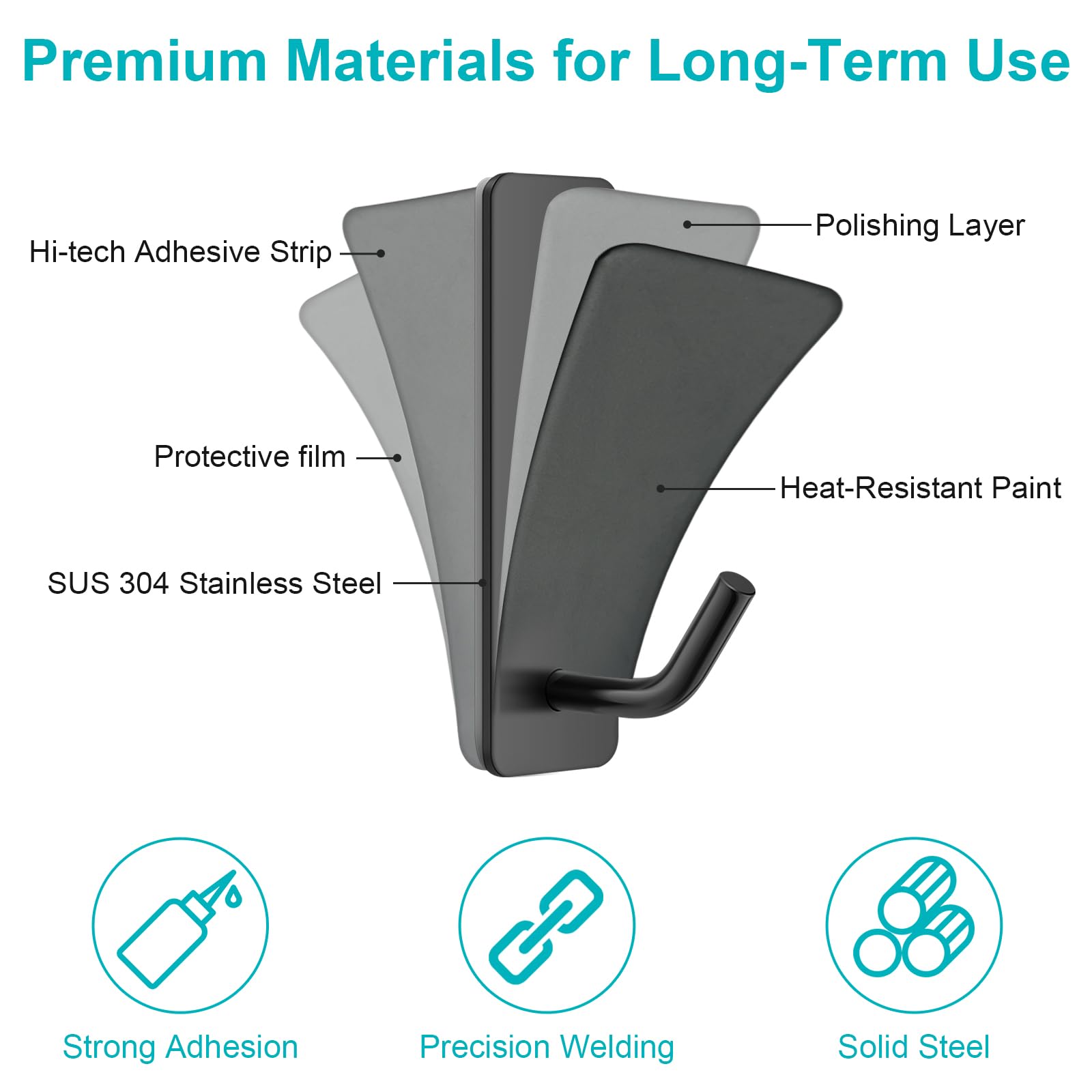 - Long-Lasting Use: With an ultra-strong adhesive strip and stainless steel construction ensures your adhesive wall hooks stays rust-free, even in humid environments like bathrooms, providing long-lasting utility and aesthetic appeal.