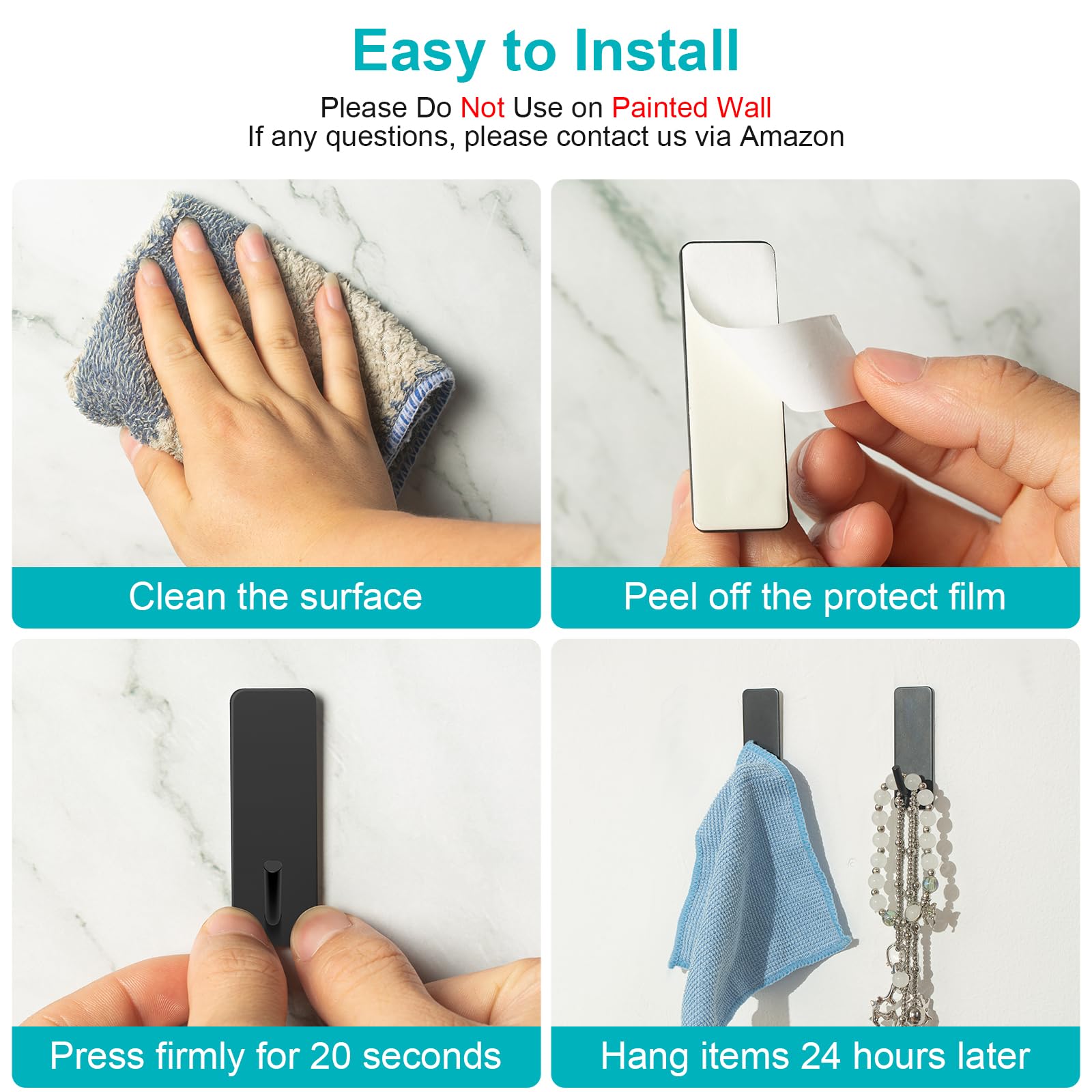 - Tips: It is not recommended to use removable wall hooks on rough surfaces such as lime walls, plaster walls, drywalls, painted walls, or textured wallpaper. Hang items under 3.5lbs and allow 24 hours for the adhesive to set before use.