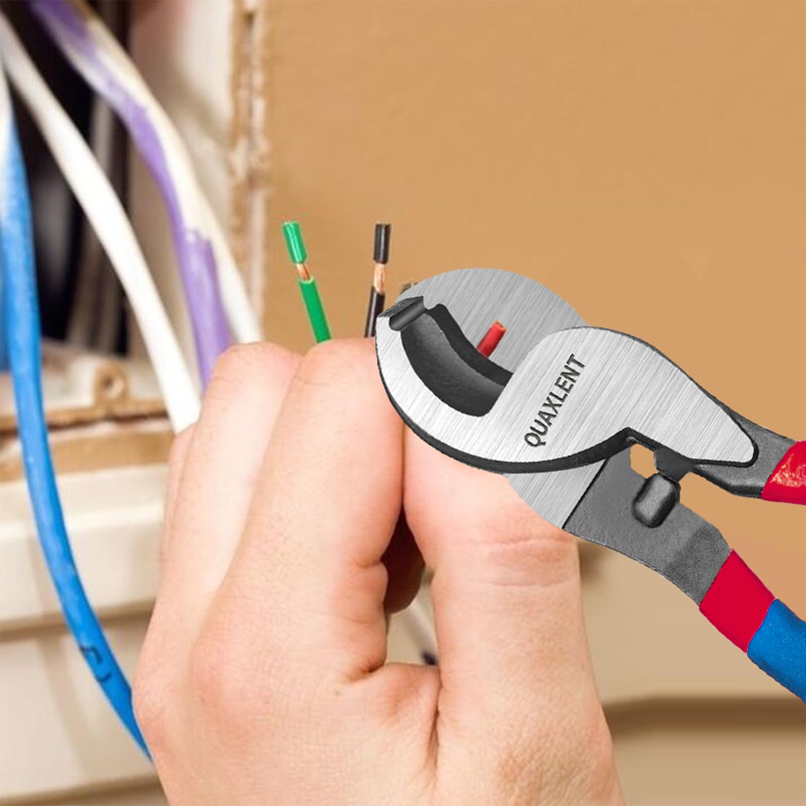 - Double Function: QUAXLENT cable cutter heavy duty is designed with two jaws, the large jaws can cut cables and wires, and the small jaws can be used to strip the sheath of small wires. Save you time and energy, make your work faster and easier.