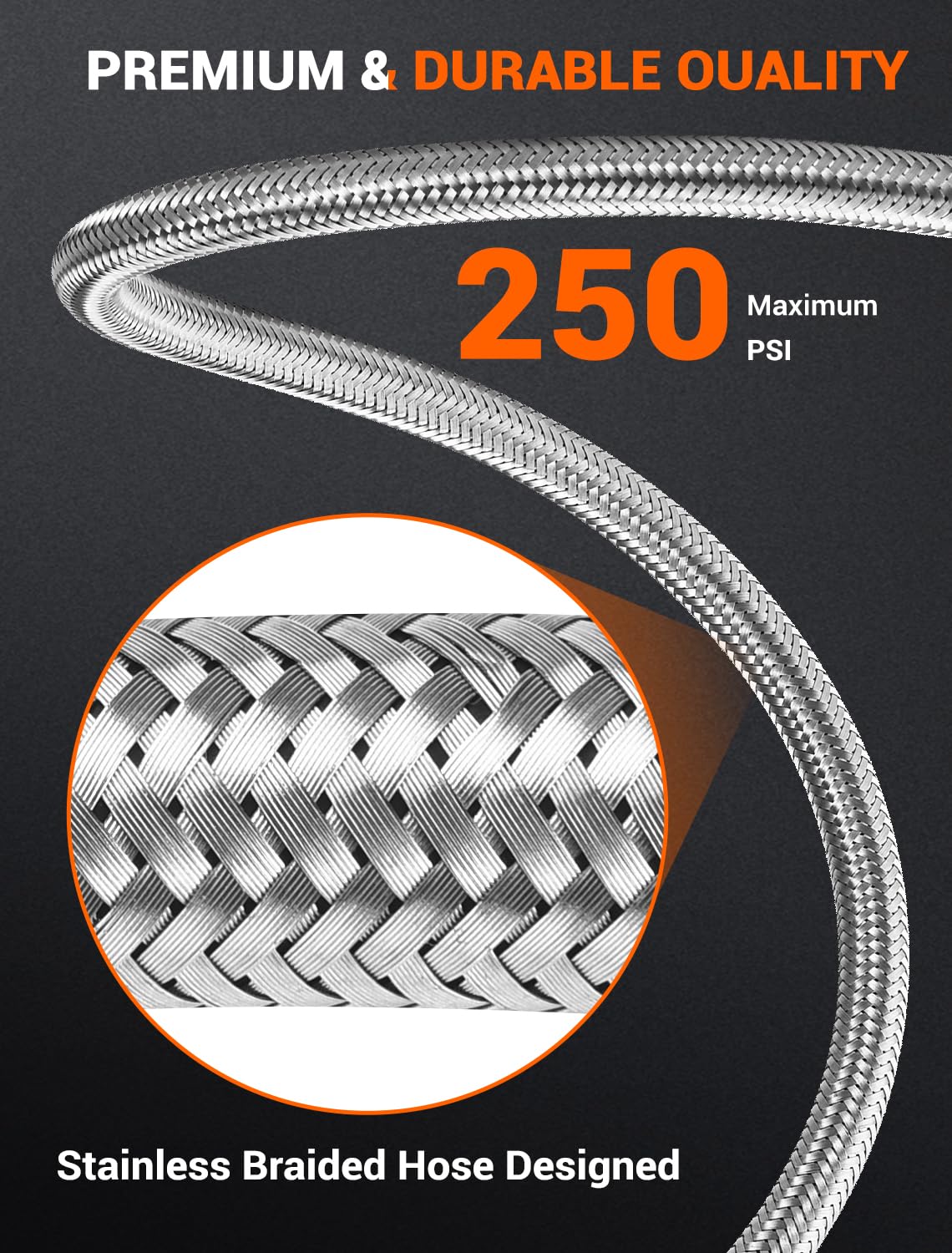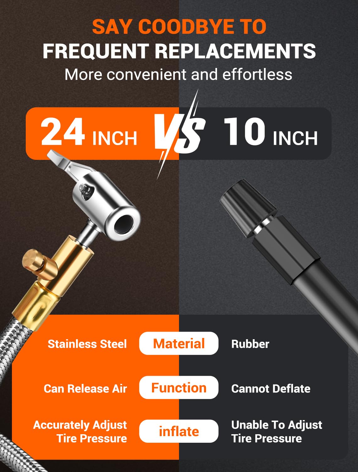 - 【COMBINATION OF STRENGTH & TOUGHNESS】This pump hose is made of stainless steel braided mesh and reinforced rubber hose. Along with solid brass quick connect air chuck so that this tire inflator hose extension is not easy to break and wear. Frost resistant, high pressure resistant and long service life.
