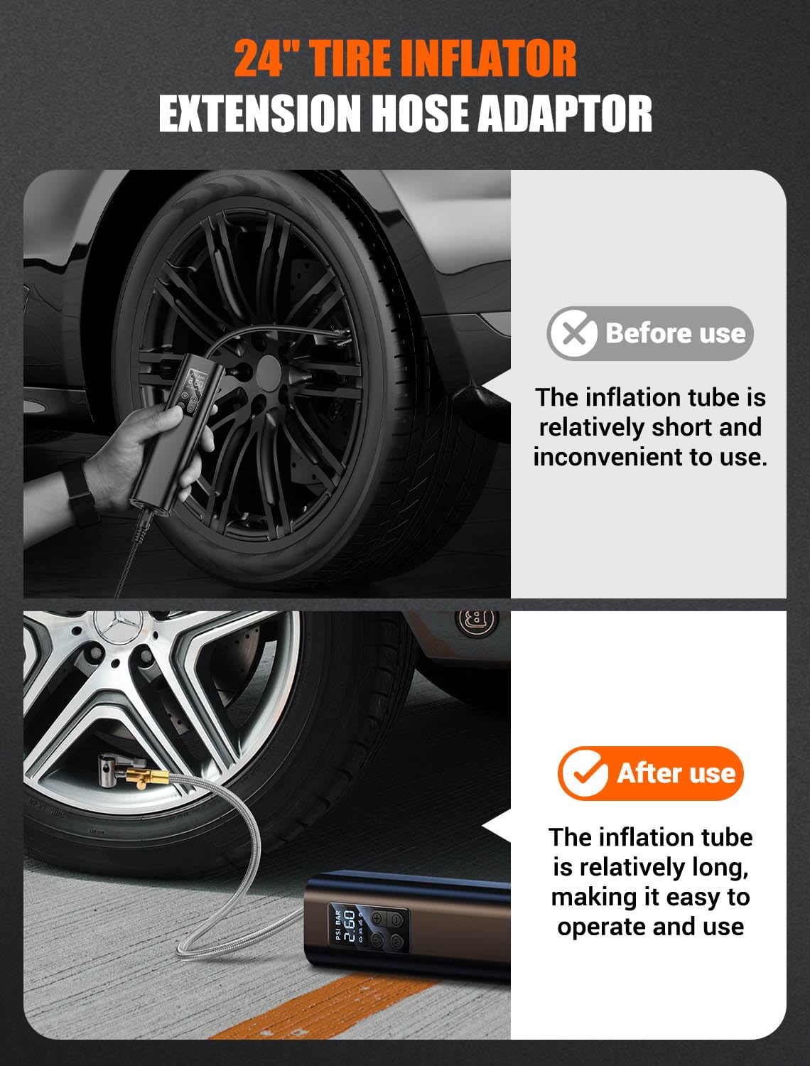 Quick Air Release Extention Replacement Hose for Portable Air Compressor, 1/4'' Thread Only Applicable to Certain Battery-Powered Portable Air Pumps. (24''/60cm)