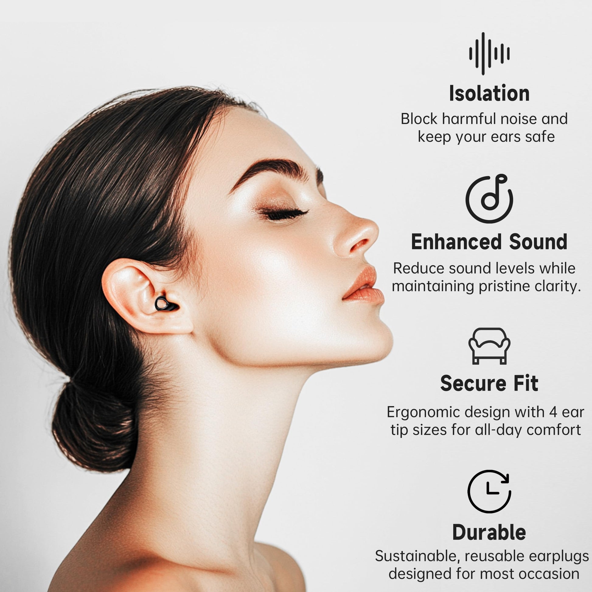 - Stylish, Portable & Reusable : Combining style and functionality, these high-fidelity earplugs boast a modern, minimalist design that complements any look. The compact carrying case ensures easy portability. Designed for repeated use, they are easy to clean.