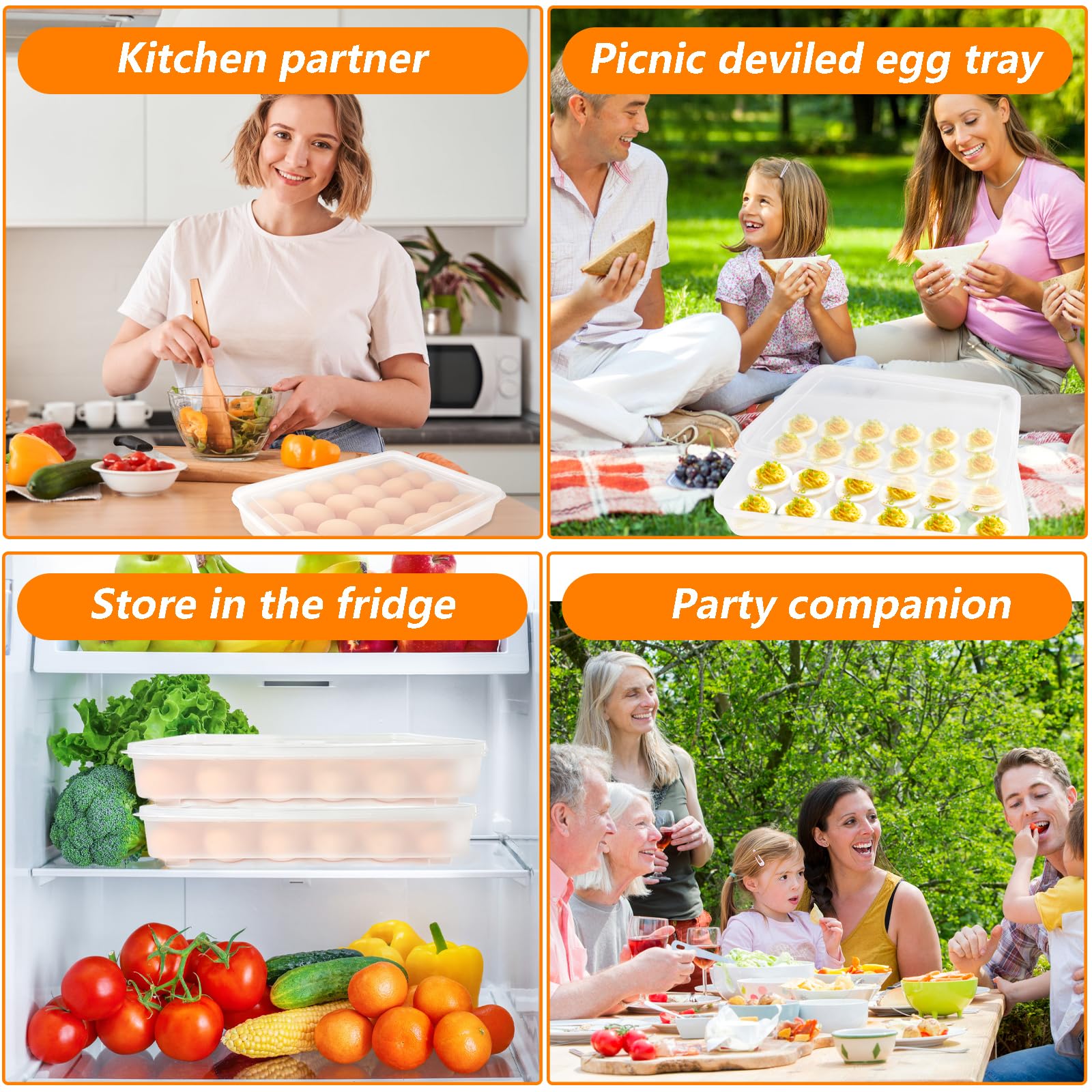 - 【Widely Application】The egg holder is suitable for refrigerators,storage rooms,cabinets,and can also be used as a devil's egg container for gatherings,camping,picnics,ensuring the freshness of devil's eggs.