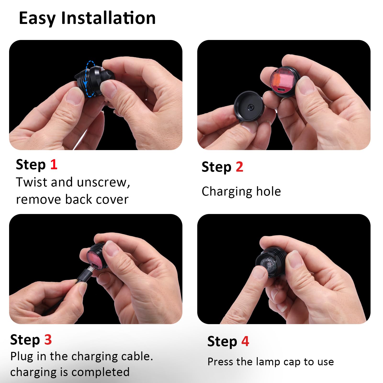 - 【3 luminous modes & Long-Lasting】 Press the cap control button continuously to change 3 different modes, including always bright, flashing or slowly flashing. It can illuminate up to 33 feet away and can last up to 72 hours after a full charge.