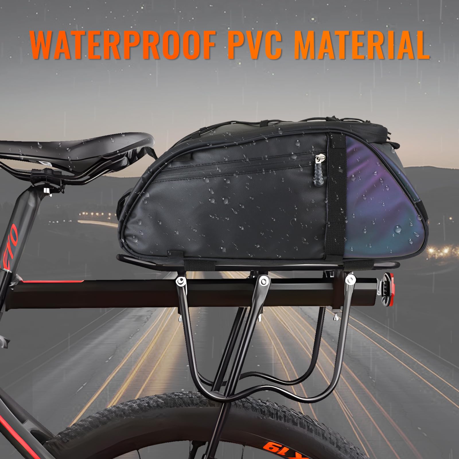 - 【Waterproof and durable】RAOOT bike rack bag is made of high-quality polyester oxford cloth and waterproof zipper, coated with PU, lightweight, durable, waterproof and easy to clean. The waterproof material can well protect your personal belongings from rain even in a downpour.