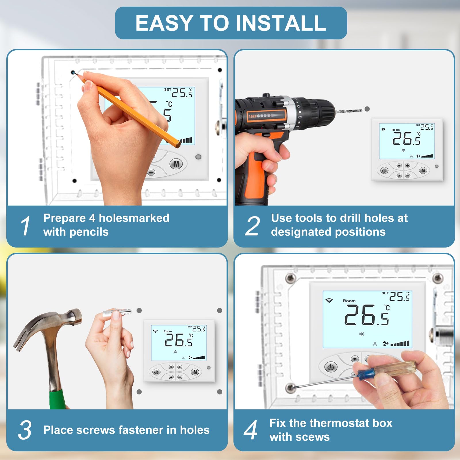- EASY INSTALLATION:The open thermostat guard allows for installation without removing the thermostat from the wall, just punch holes around your existing thermostat to install it in the right place, you can install this thermostat guard horizontally or vertically to fit your thermostat