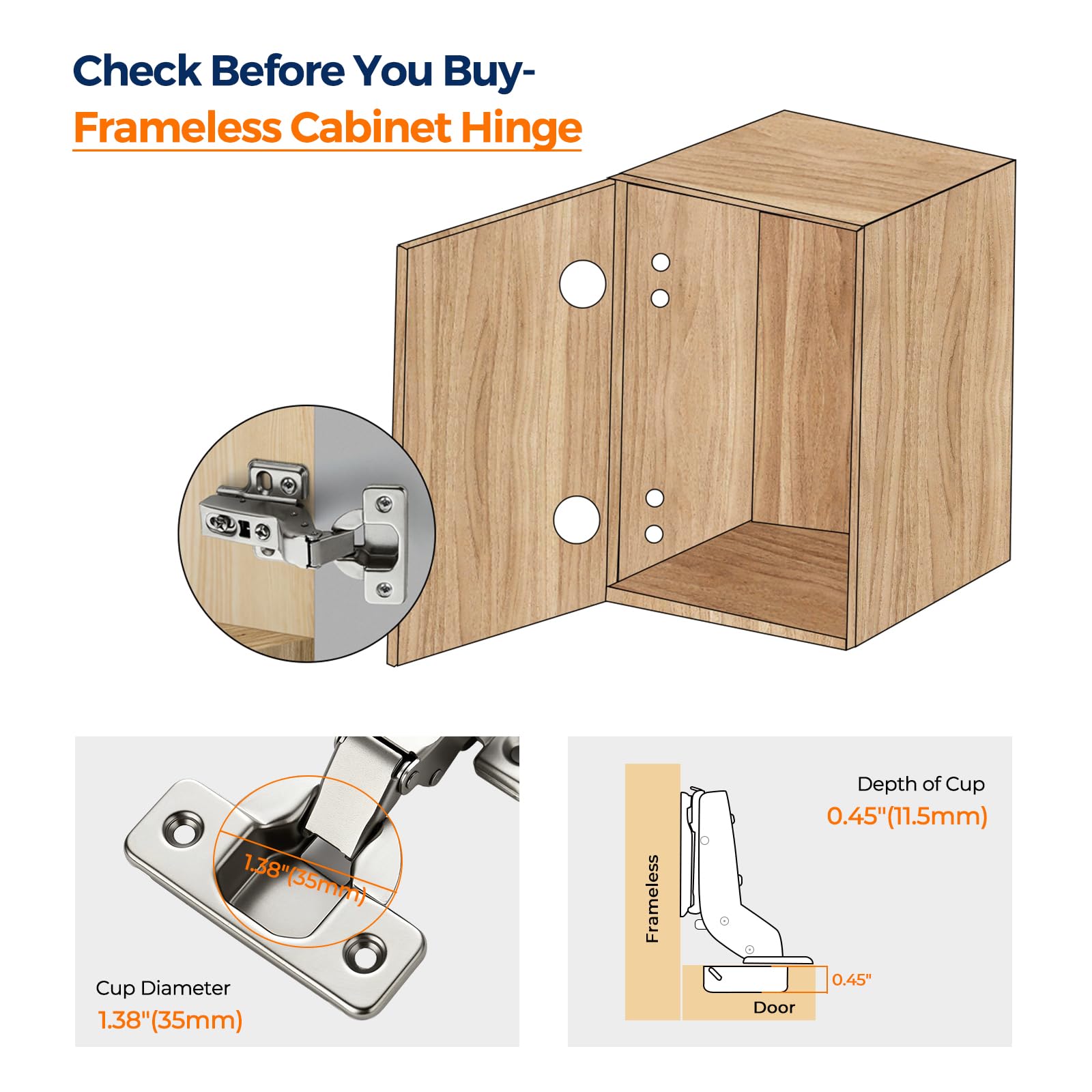- Easy installation: The cabinet mounting plate could snap off, the function will help you rid off holding the door during installation, you can easily arrange the hinge on the door and the inside of the cabinet then unattach them from each other with a simple press of the hinge clasp.