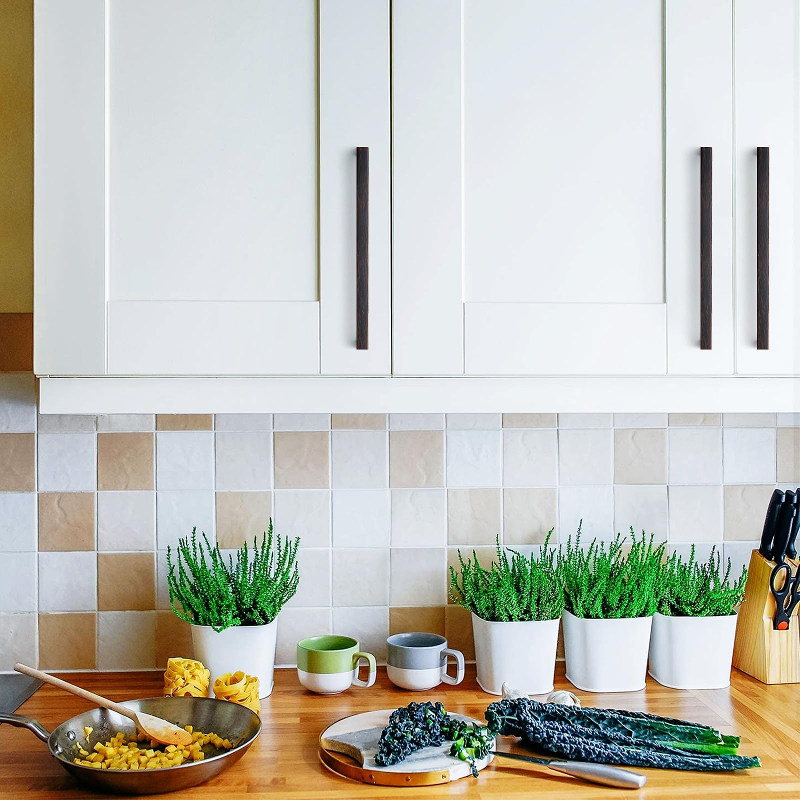 - Simple look: The Bronze cabinet handles have a wide appeal across a range of kitchen cabinet doors and drawers The Oil-Rubbed Bronze handles have a clean and timeless look that works with farmhouse, vintage, traditional and transitional styles