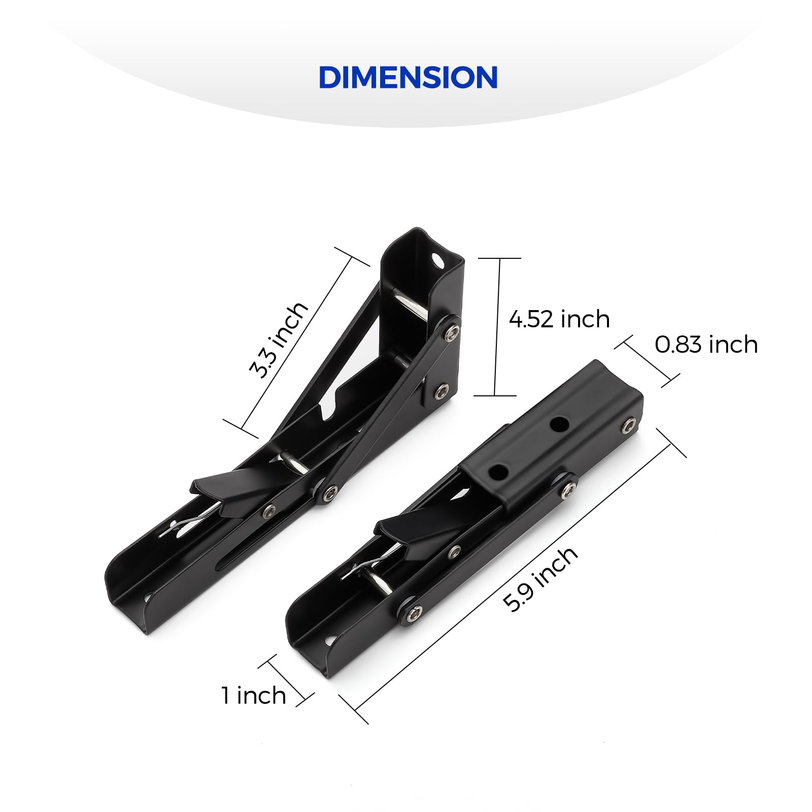 Ravinte 6 Inch Heavy Duty Folding Shelf Brackets - Collapsible Matte Black Brackets for Table, Bench, Space Saving Design, 2 Pack