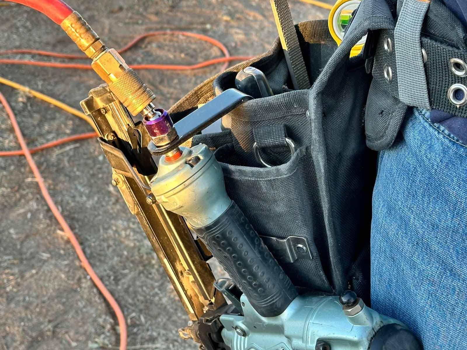 - 🔥The air fitting is all solid steel and the hook is aluminum, which makes for an overal lightweight but sturdy setup. It has no problem hanging your framing nailer, doesn't even give a hint of flexing...this is a very strong hook!