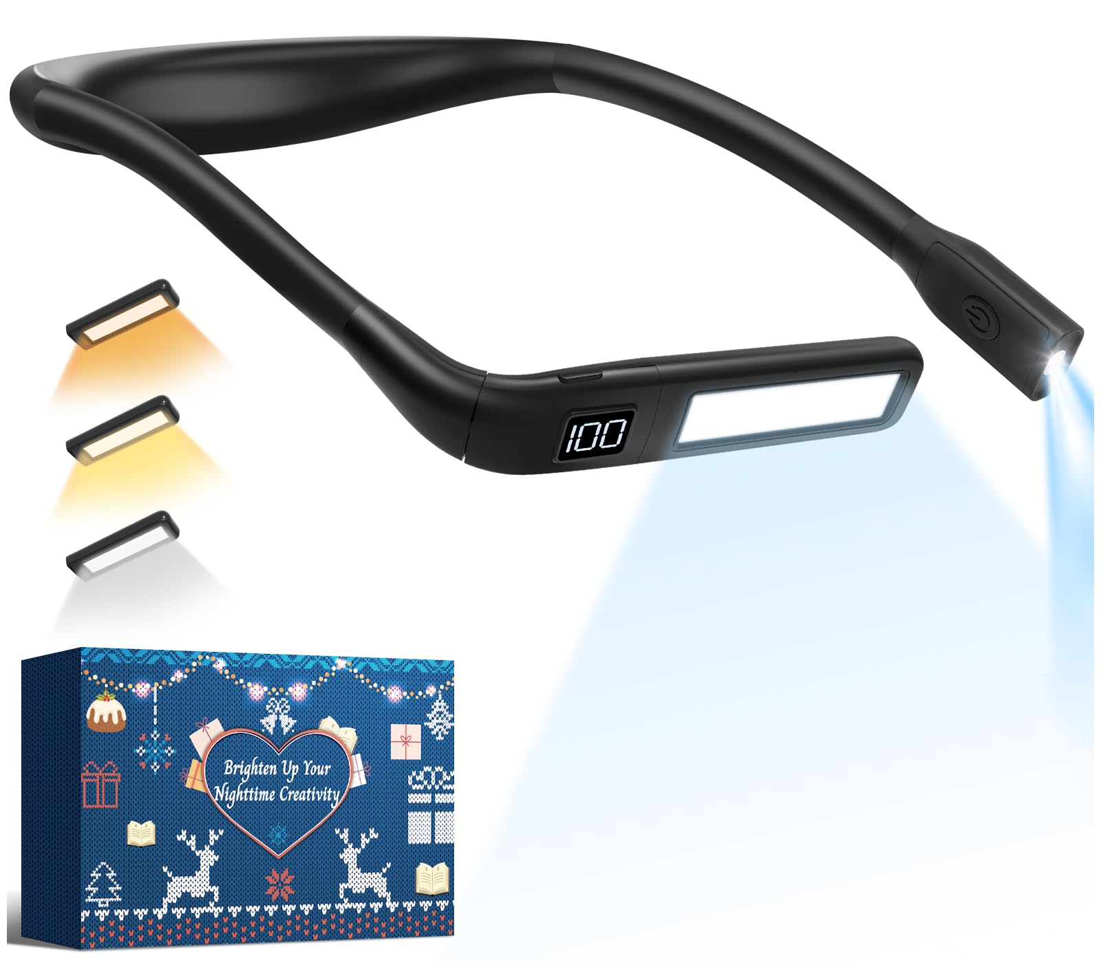 Reading Light Book Lovers Gifts: Upgraded Neck Light with Power Display & Timer, 80Hrs Rechargeable Book Lights for Reading at Night, Birthday Gifts for Readers Women Men, Knitting Crochet Accessories