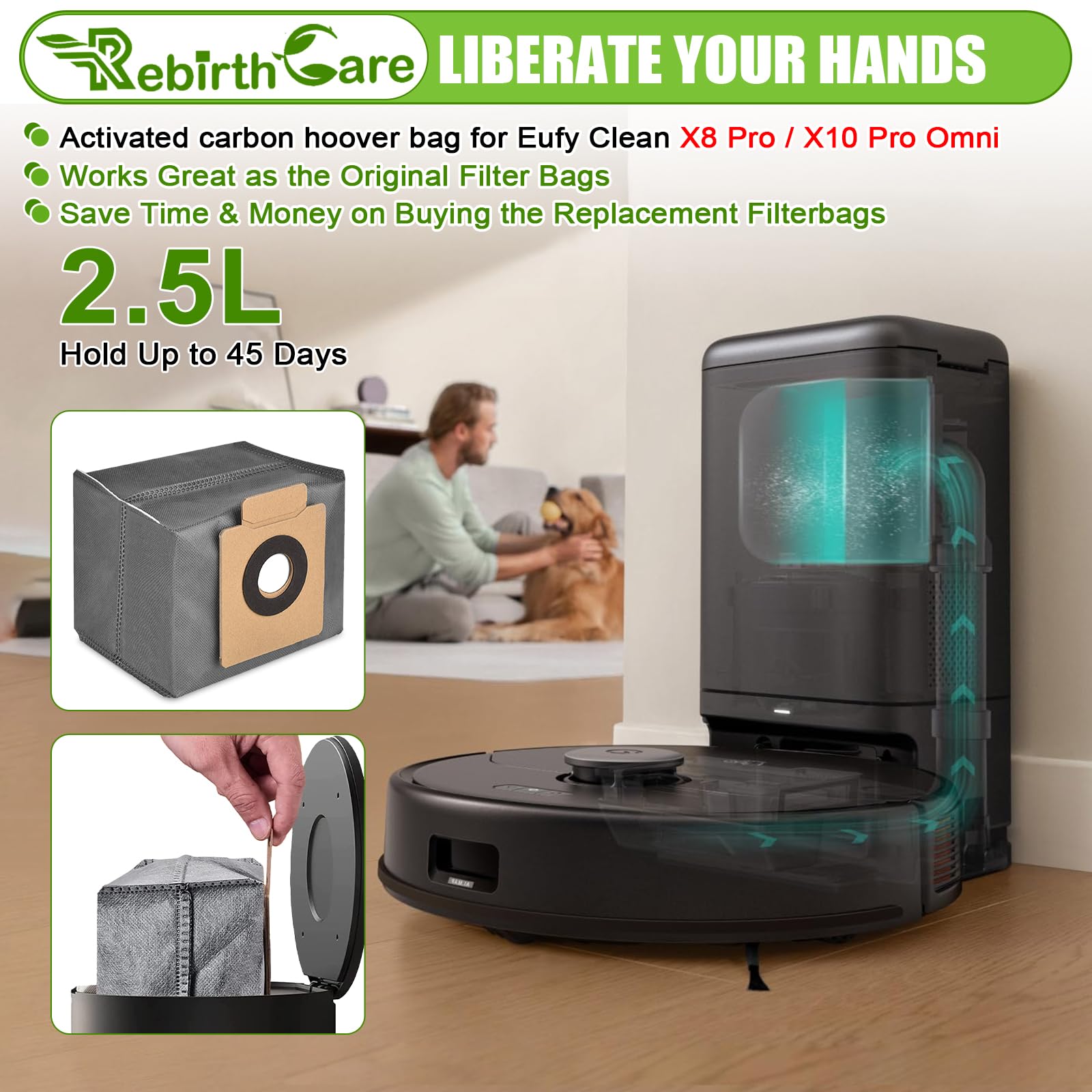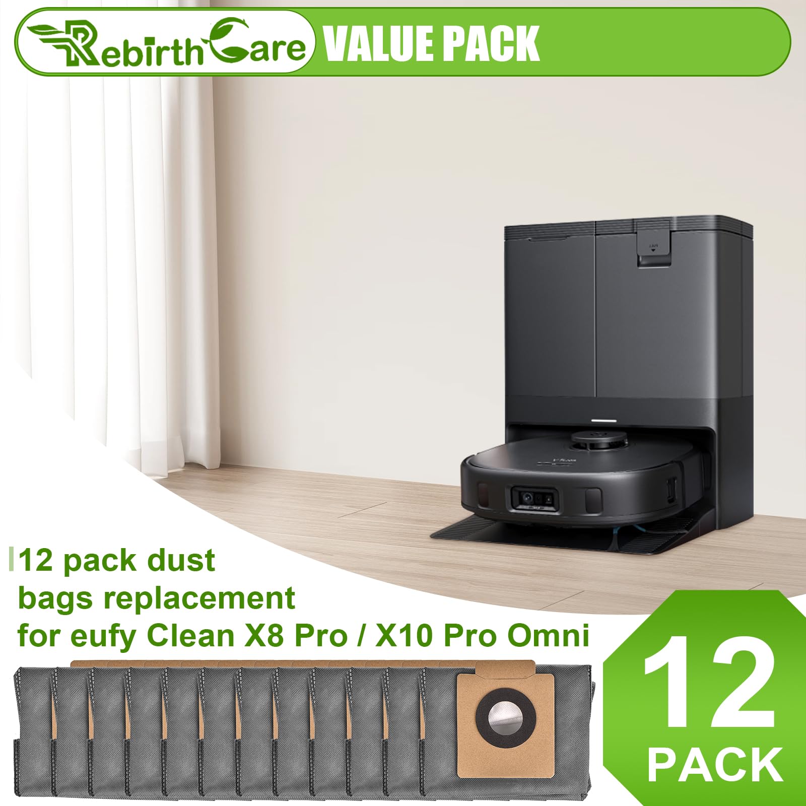 Rebirthcare 12 Pack X8 Pro Dust Bag Compatible with Eufy Clean X8 Pro X10 Pro Omni Robot Vacuum Self-empty Station 2.5L Large Capacity Replacement Bag