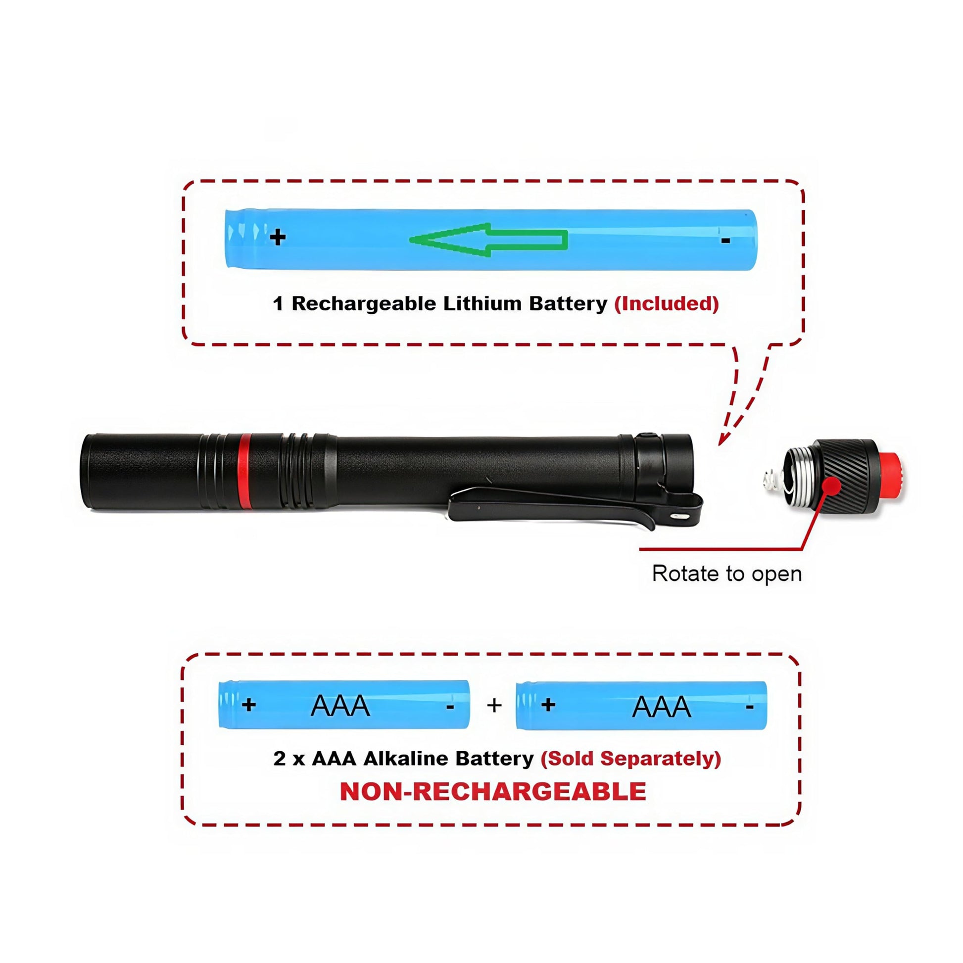 - COMPACT - This rechargeable pocket pen LED flashlight offers powerful illumination in compact form and can be recharged repeatedly.