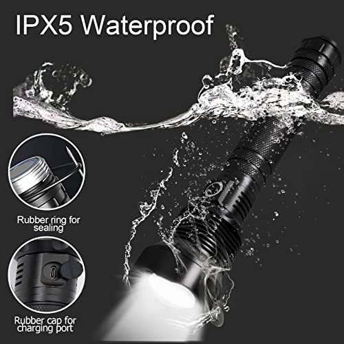 Rechargeable LED Flashlights, 100000 High Lumens Super Bright Flashlights with 5 Modes Waterproof Zoomable Flash Light for Outdoor Emergency