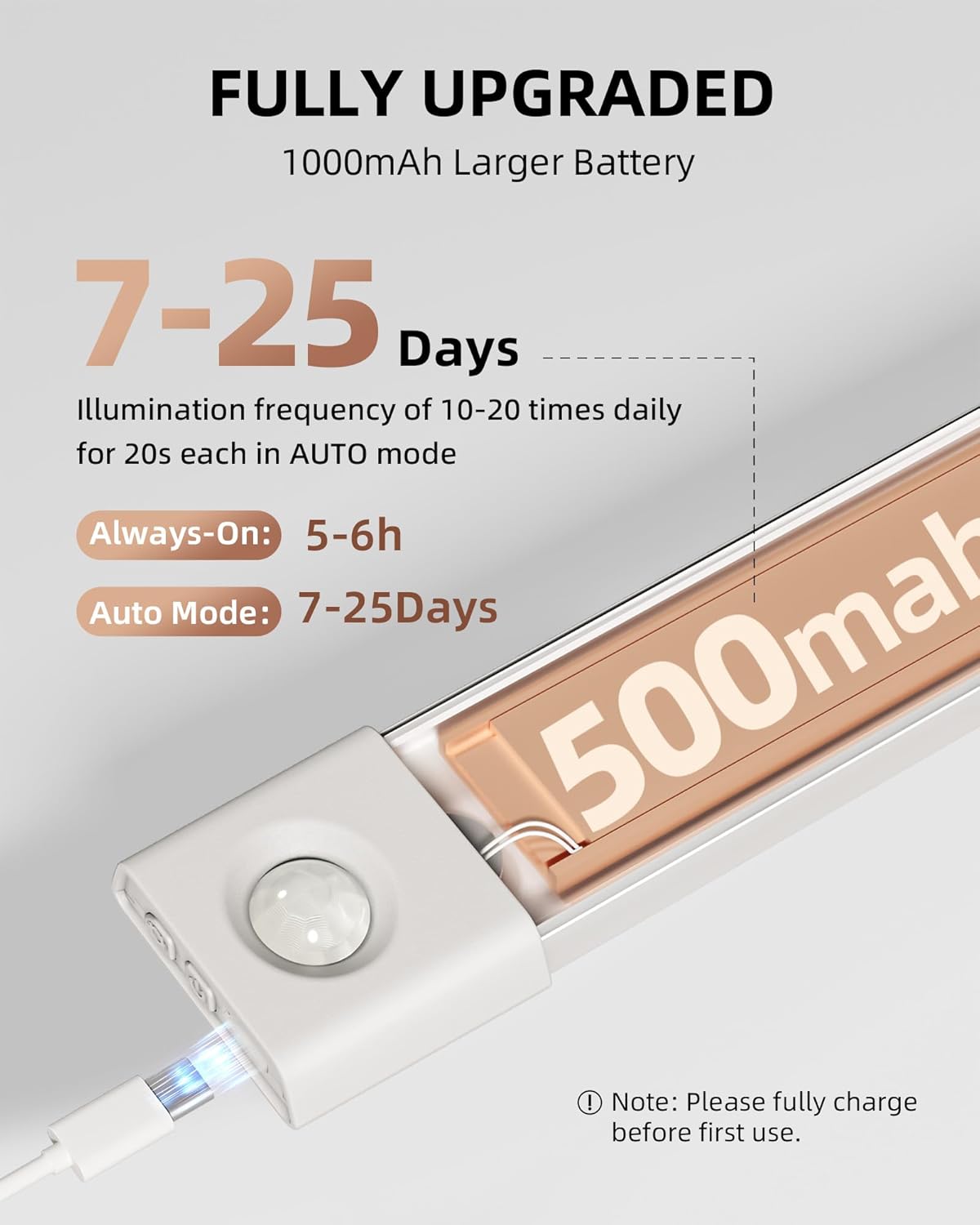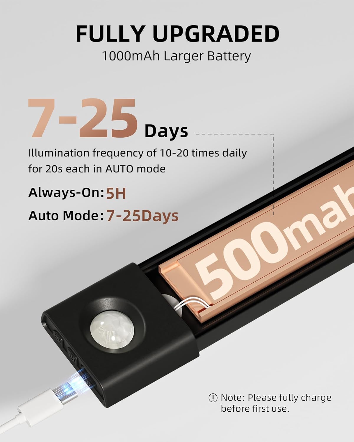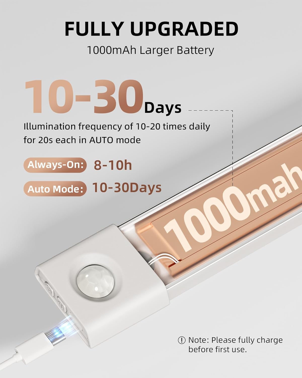 - Long-Lasting Rechargeable Battery: Built-in 1500mAh battery offers 10-30 days of use under typical motion activation (10-20 activations/day) or up to 8-10 hours of continuous lighting at maximum brightness. Energy-efficient design means less frequent charging, ensuring reliable illumination whenever you need it.