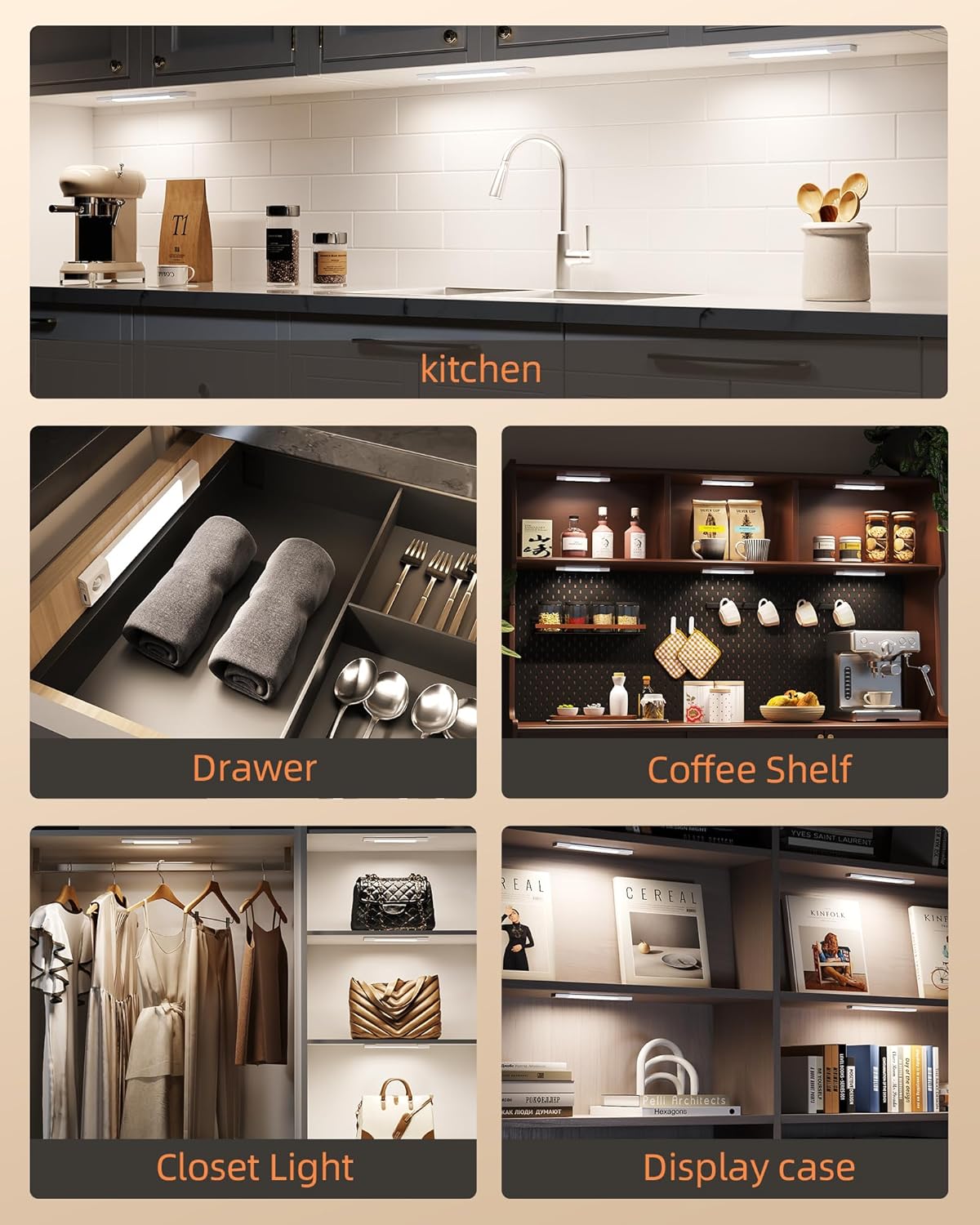 - Versatile Lighting for Multiple Spaces: This 50 LED under cabinet light delivers bright, even illumination—ideal for closets, kitchens, pantries, bedrooms, offices, and workshops. Effortlessly brighten dark corners, storage spaces, and work areas throughout your home, with reliable, energy-efficient performance.