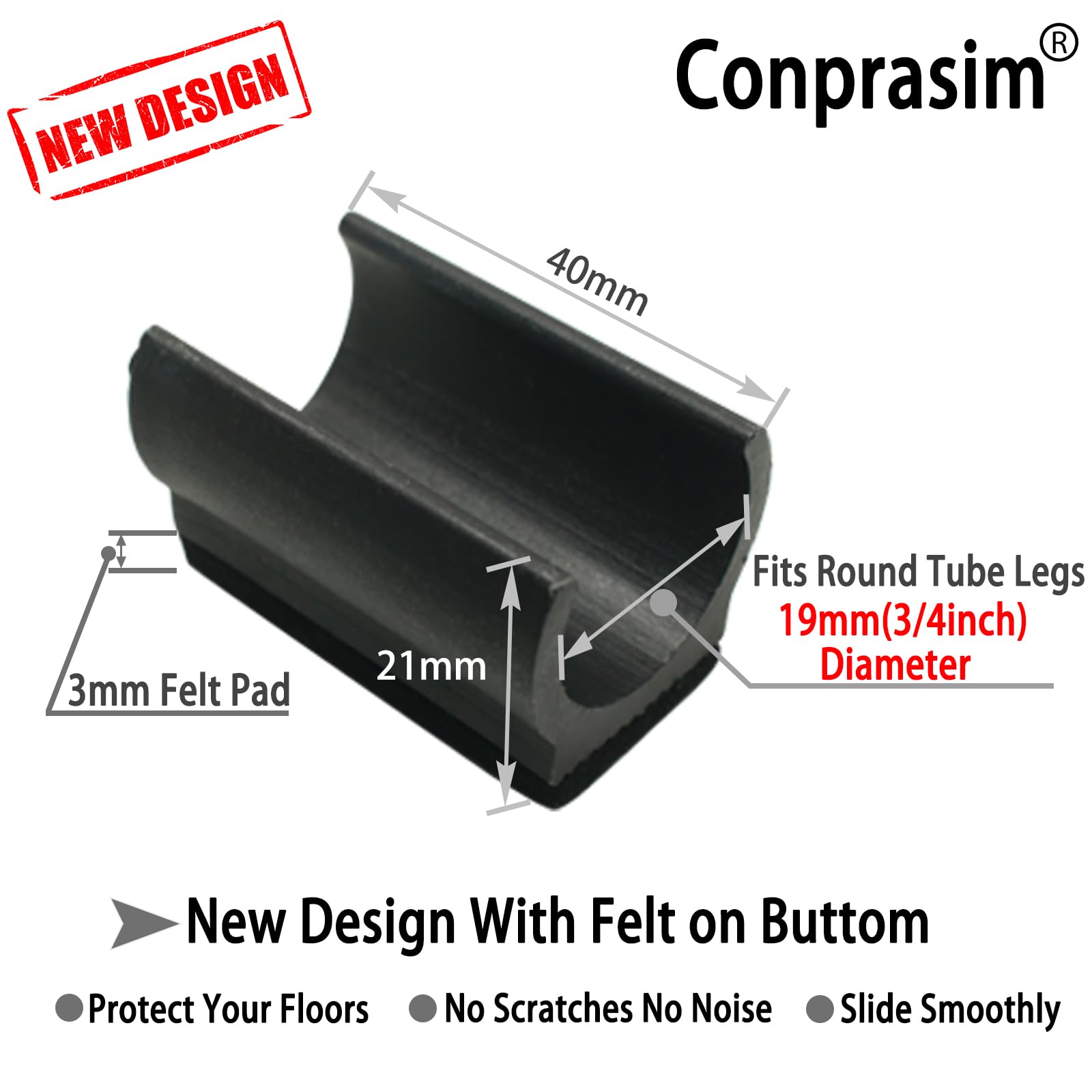 - Fit to Metal Round Tube Legs: Conprasim furniture feet plastic U shape foot cap to fit metal round tube legs furniture legs. Please MEASURE the leg diameter size before purchase to save time! Fit Leg Size: Metal Round Tubular Legs Diameter 19mm(3/4inch).Please watch the video