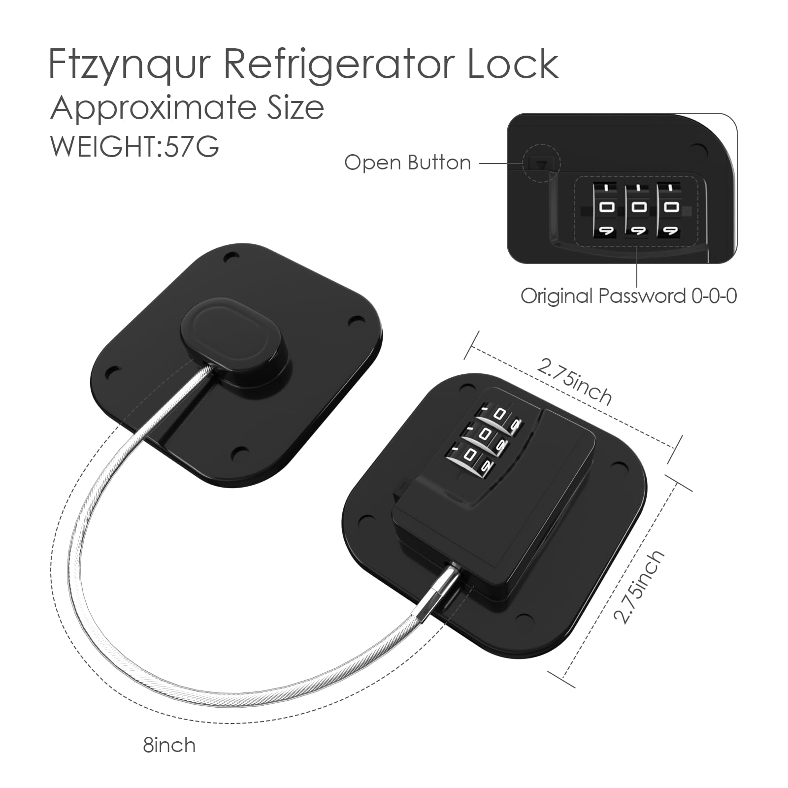 Refrigerator Lock - Heavy Duty Fridge & Cabinet Lock, Keyless Combination Lock for Drawers, Ovens, Trash Cans, and More | Easy Install | Black (2-Pack)