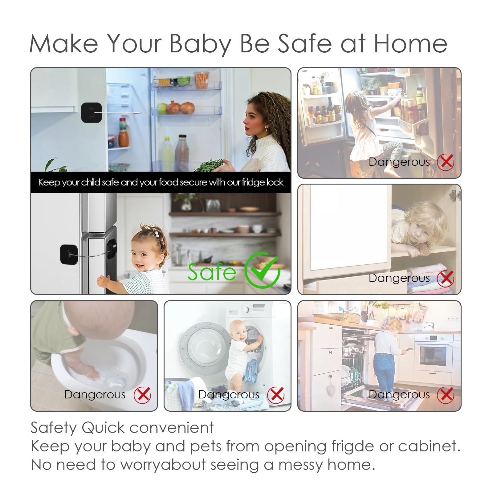 - Enhanced Home Safety: Safeguard your refrigerator, cabinets, ovens, trash cans, and more with our durable lock. No complicated installations—just stick and secure!