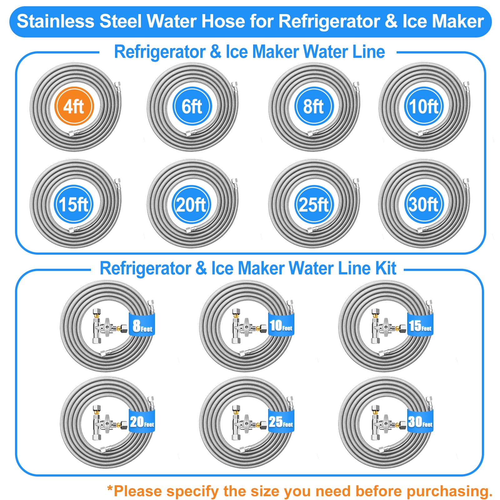 Refrigerator water line - 4 FT Premium Stainless Steel Braided Ice Maker Water Hose,Food grade PEX Inner Tube Fridge Water Line with 1/4" Fittings for Refrigerator Ice Maker