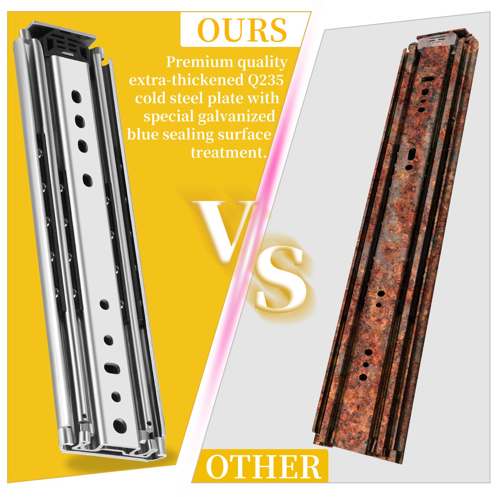 - 【Corrosion resistant and Anti-rust】 The rust resistance of our slides is superior to the others because of the special galvanized blue sealing surface treatment.