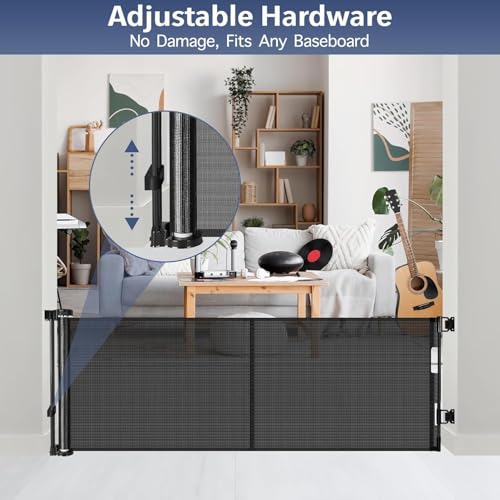 - Space-Saving Retractable Design: Easily operated with 1 hand, this puppy gate for stairs smoothly retracts when not in use, saving space and ensuring easy access. With no bottom bar when retracted, there are no tripping hazards.