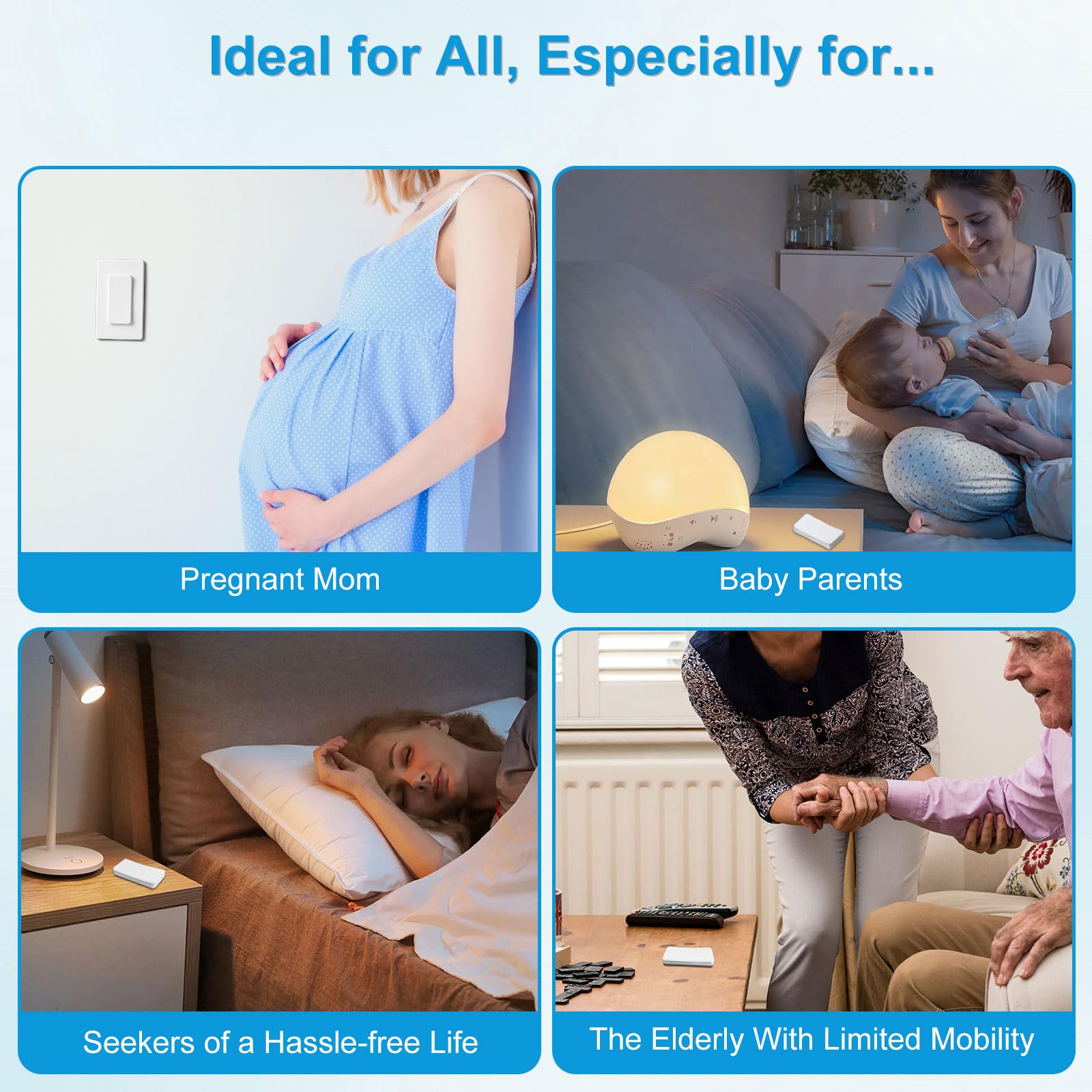 - 【✅Buckle Design & Detachable Wall-mounted Switch】The wireless remote control outlet compact comprises 2 parts:the base and the remote control body. After fixing the base, you can opt for wall-mounted control or detach the mini remote for handheld use. The compact size of the remote body ensures easy portability. (Includes 1-stop installation service with double-sided tape and screws for panel fixation.) Ideal for the elderly, pregnant women, parents with babies, and individuals with disabilities.