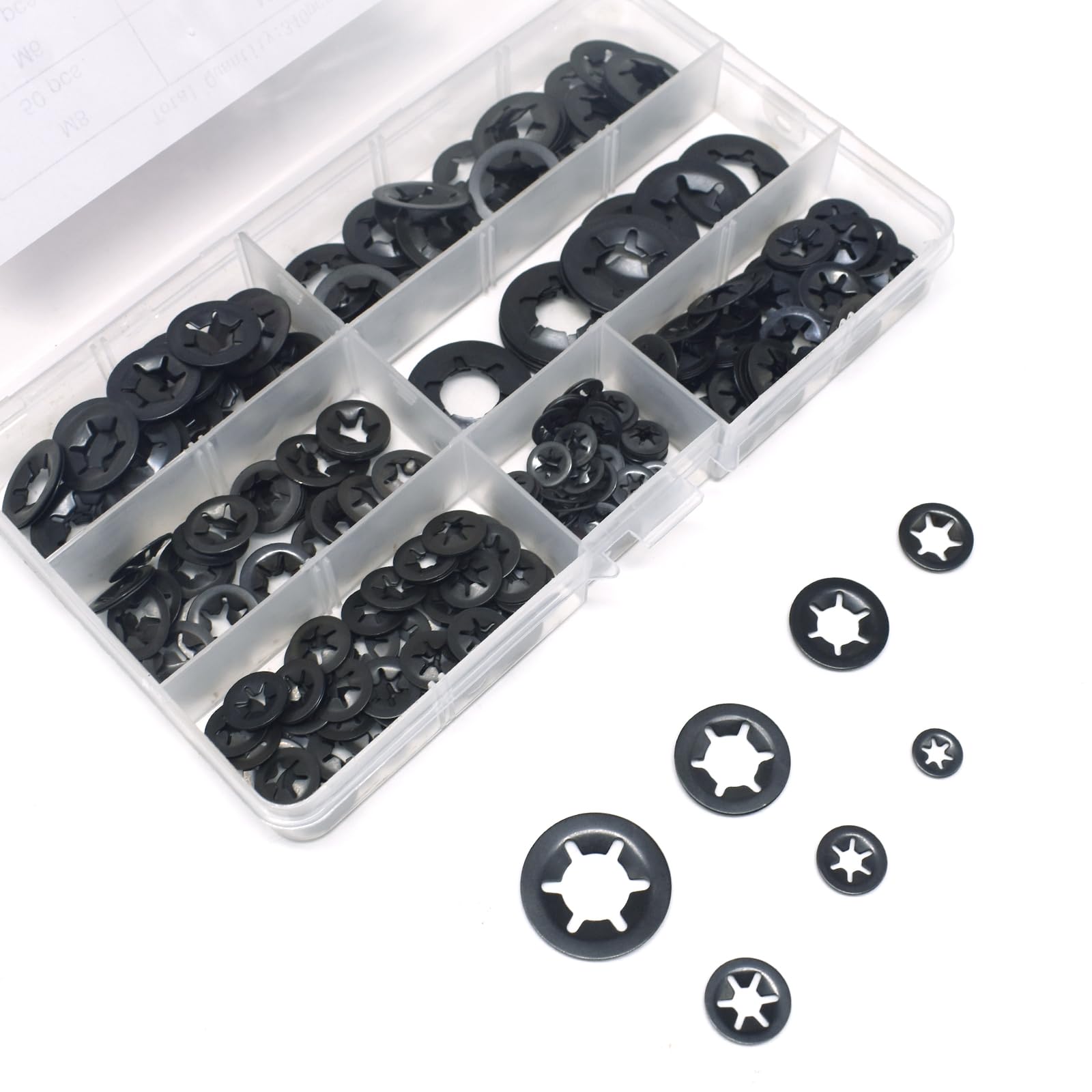 Details: This 340pcs multi-specification internal tooth star lock washers set, with its complete range of specifications, 65Mn steel, efficient anti-loosening performance, wide applicability and excellent durability, is your ideal choice.