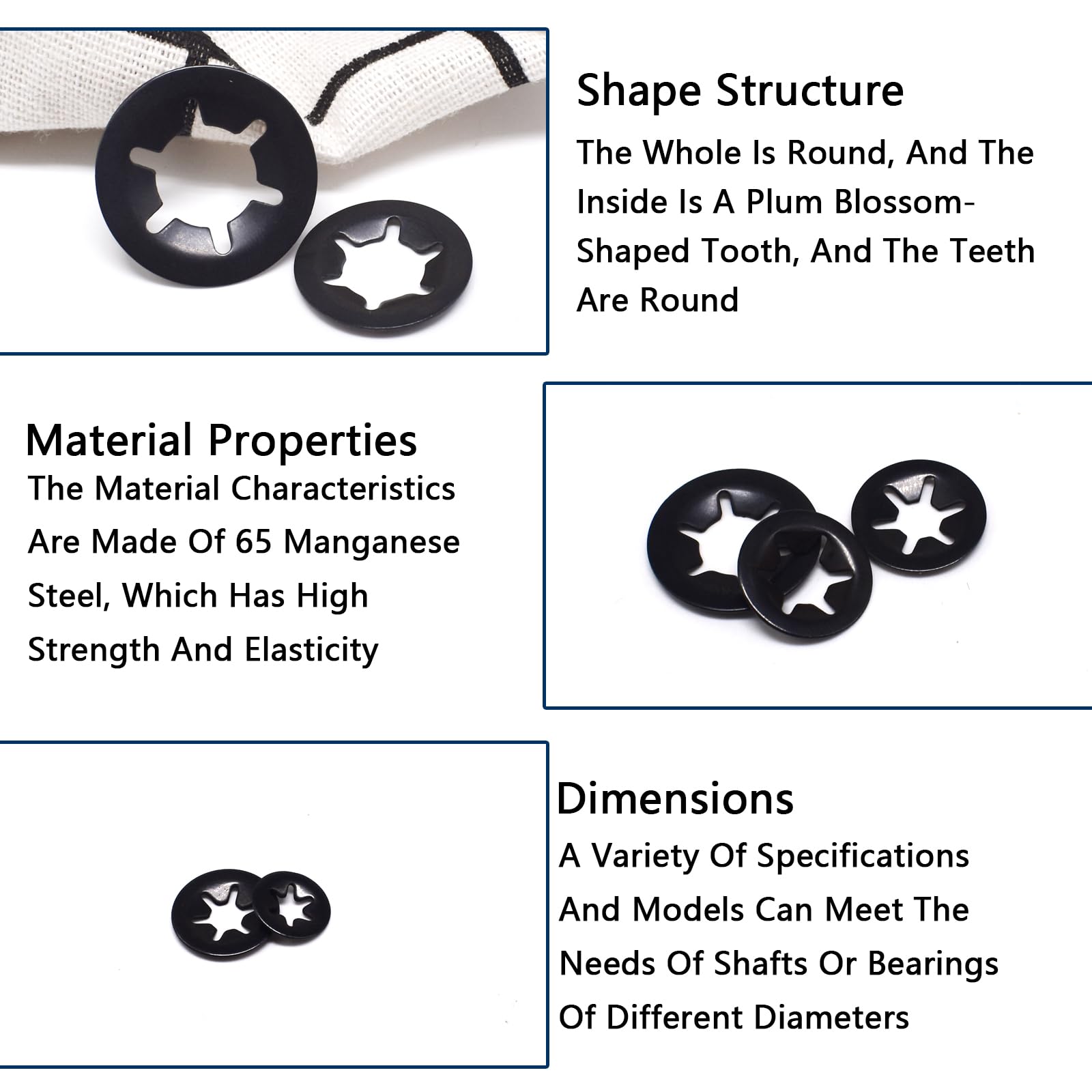 - Premium Material: The speed locking washers are made of 65Mn steel, can withstand certain high temperatures or impacts, practical, stable, sturdy and durable, not prone to corrosion, and can be used for a long time.