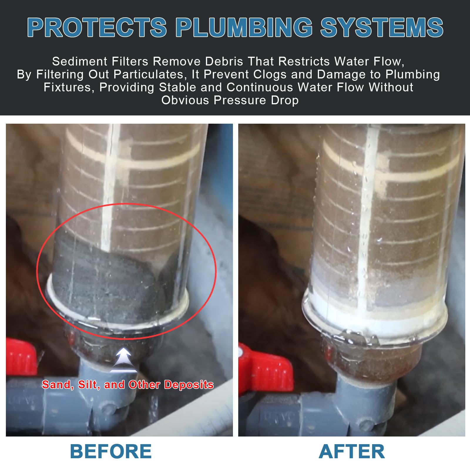 - 【Protects Plumbing Systems】: Spin down sediment filter screen replacement removes debris that restrict water flow, By filtering out particulates, it prevents clogs and damage to plumbing fixtures, providing with stable and continuous water flow without obvious pressure drop