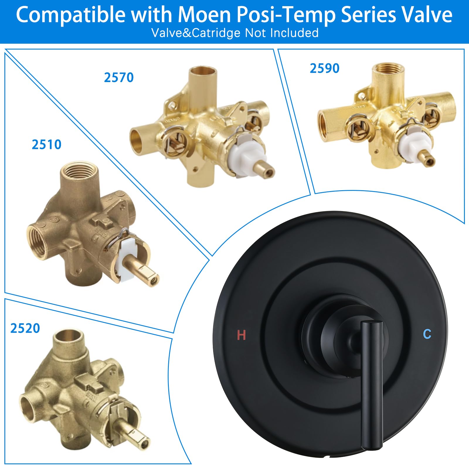 Replacement for Moen Shower Faucet Trim Kit, 8" High Pressure Rain Showerhead, Shower Handle (Valve& Catridge Not Inclued), Matte Black