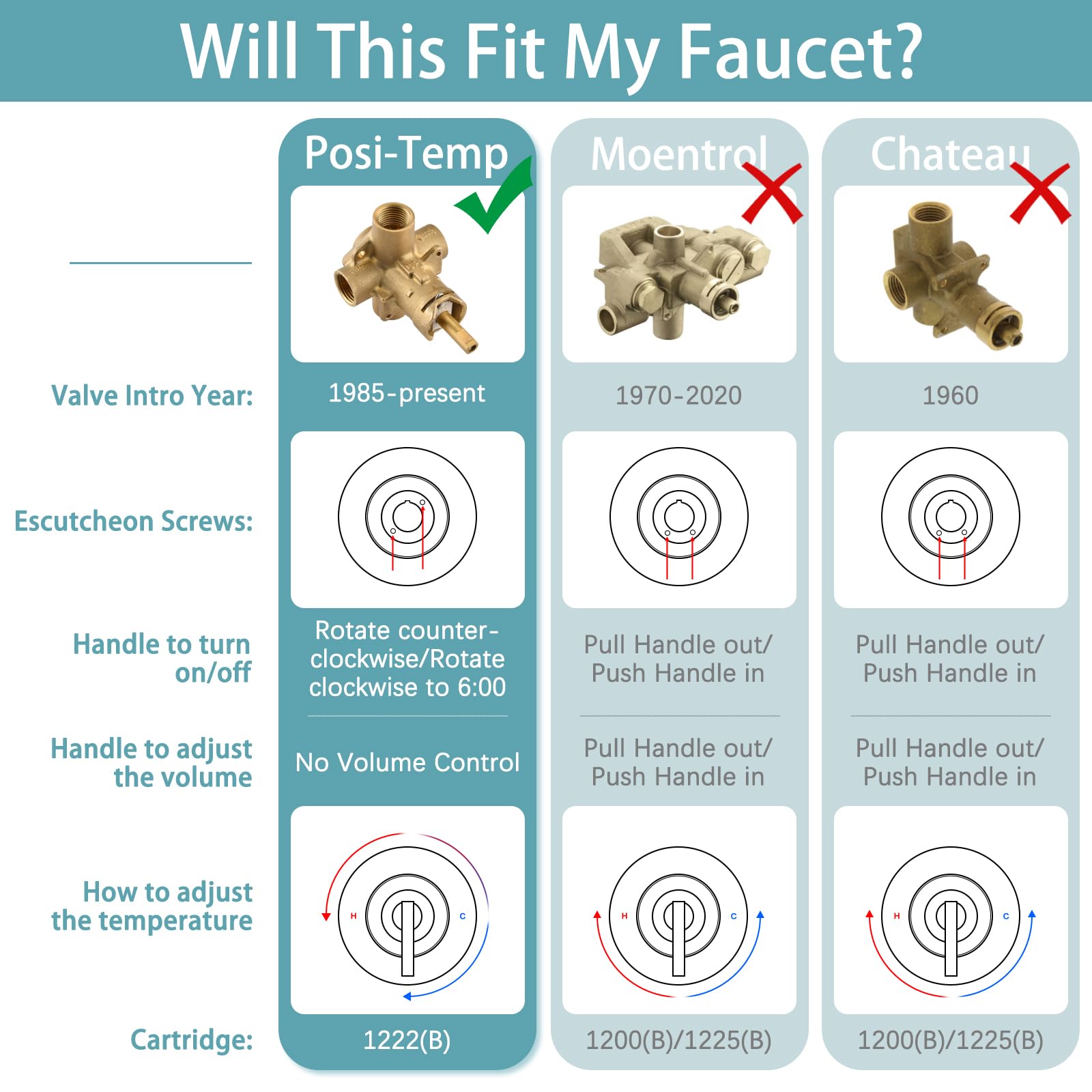 - Rough& Cartridge NOT INCLUDED - This trim kit compatible with Moen valve: # 2510, 2520, 2570, or 2590. You need purchase 1222 cartridge to completely remodel. It's also a affordable choice for renovation youself to get rid of old shower faucet. No tile demo or plumbing adjustments required.