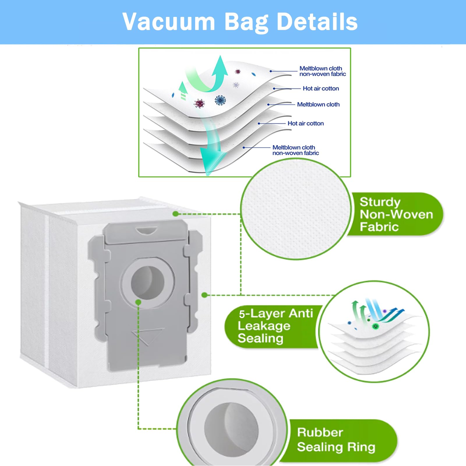 - Durable Material: These replacement parts are made of high quality PC, Compatible and work just like the original one, The side brush will not scratch the floor and furniture, greatly ensure the safety and cleaning effect during the process of the use. Each bag can hold 30 bins of dirt and debris, you only need to pour the dirt in the dust bag into the dumpster, and then you can use it again