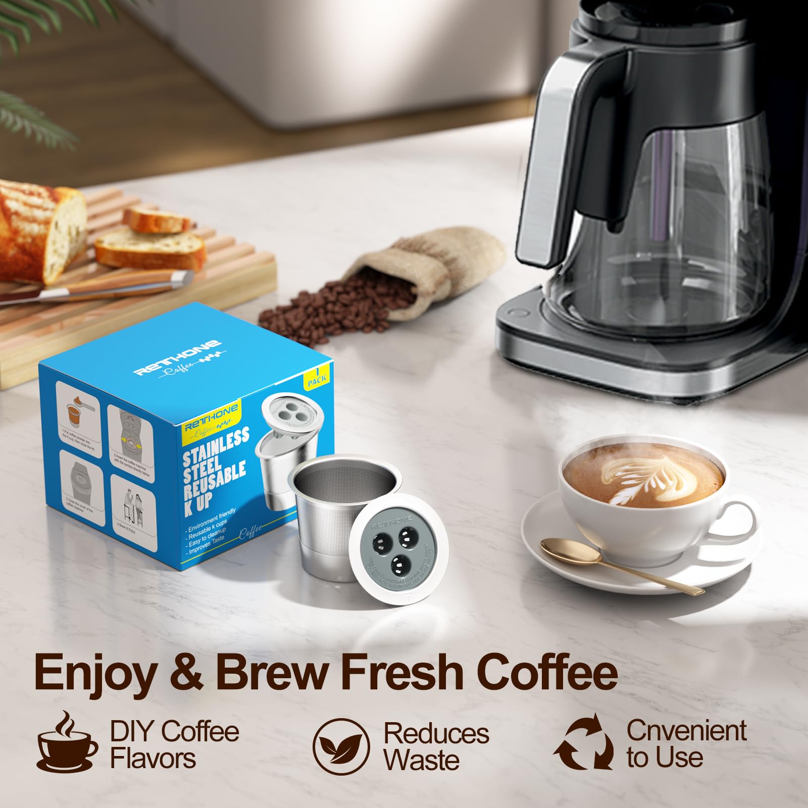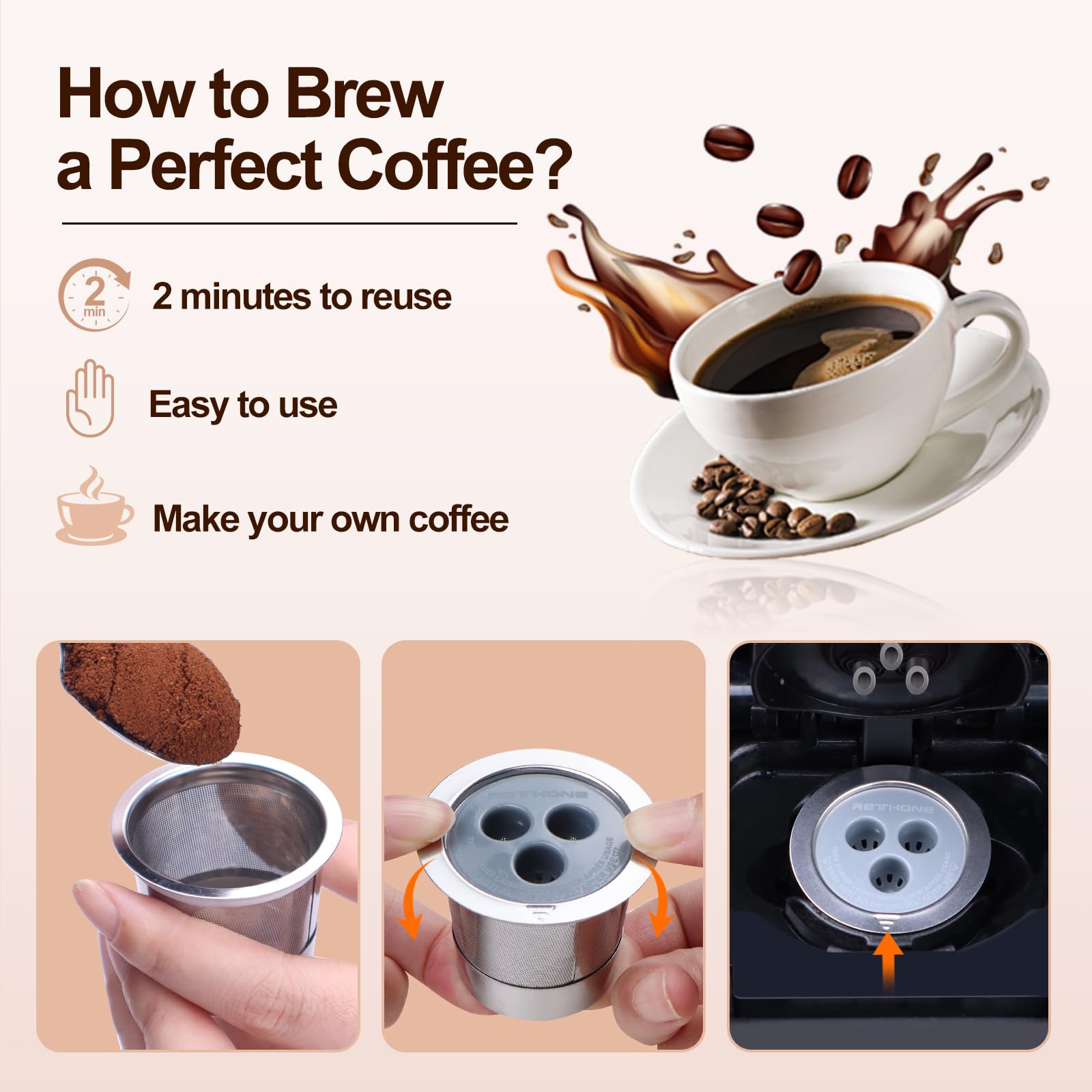 - Eco-Friendly & Money Saver: RETHONE reusable k cup is made of high-quality stainless steel which is durable, It will help you save money and contribute to the protection of the environment.