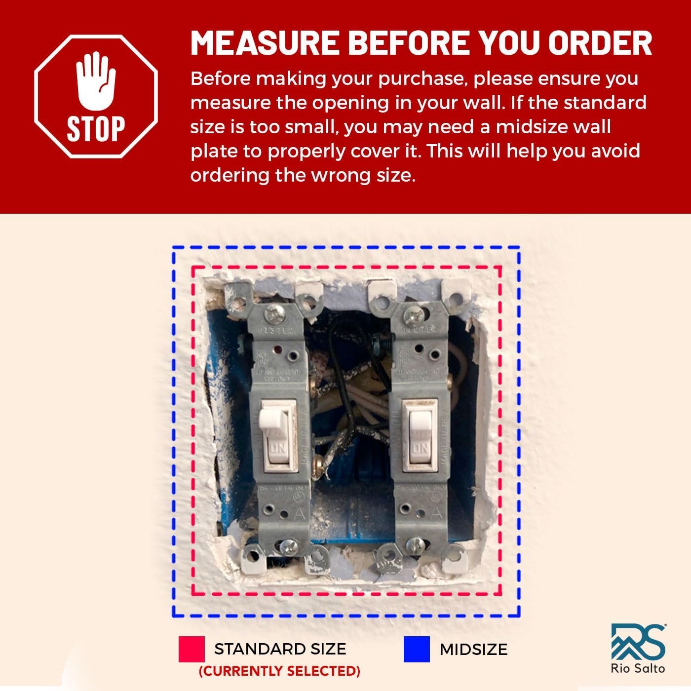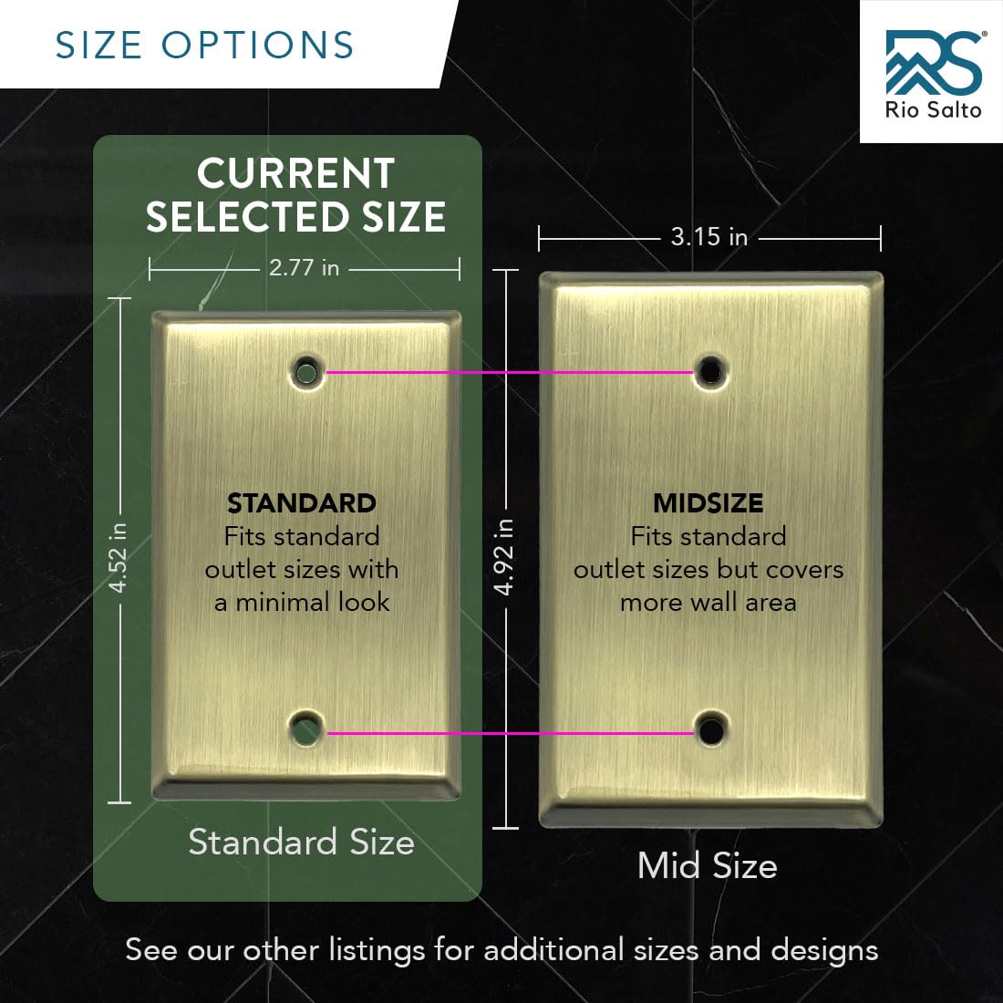 - The Perfect Size : Each outlet plug covers is 4.5" x 2.76" to fit most receptical outlets. Stronger than stainless steel and will match most toggle electric plates. The perfect way to match gold light switch cover and toggle switch wall light for home improvement. Outlet covers wall plate will last YEARS longer than any cheap plastic outlet cover. Switch plates and outlet covers for electrical outlets is an instant home improvement.