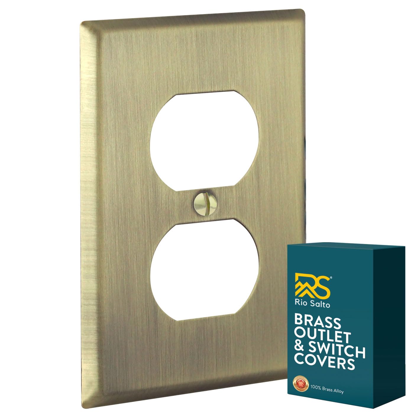 Rio Salto BRASS Outlet Duplex Antique Gold Metal Outlet Cover STANDARD SIZE Light Switch Cover Wall Plate Single Receptacle Wallplate Covers Single Gang Matte Gold Finish (Duplex, 1-Gang)