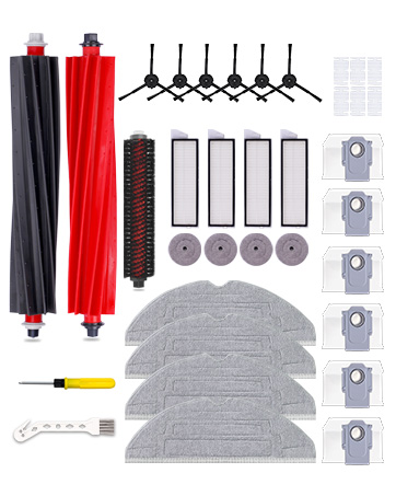 - 【GREAT VALUE PACKS】Replacement attachment include 1 High Speed Cleaning Brush, 1 Set Main Brushes, 4 HEPA Filters, 4 Mop Cloths, 4 Edge Mop Cloths, 6 Side Brushes, 6 Dust Bags, 6 Scent Tablets, 1 Cleaning Brush, 1 Screwdriver