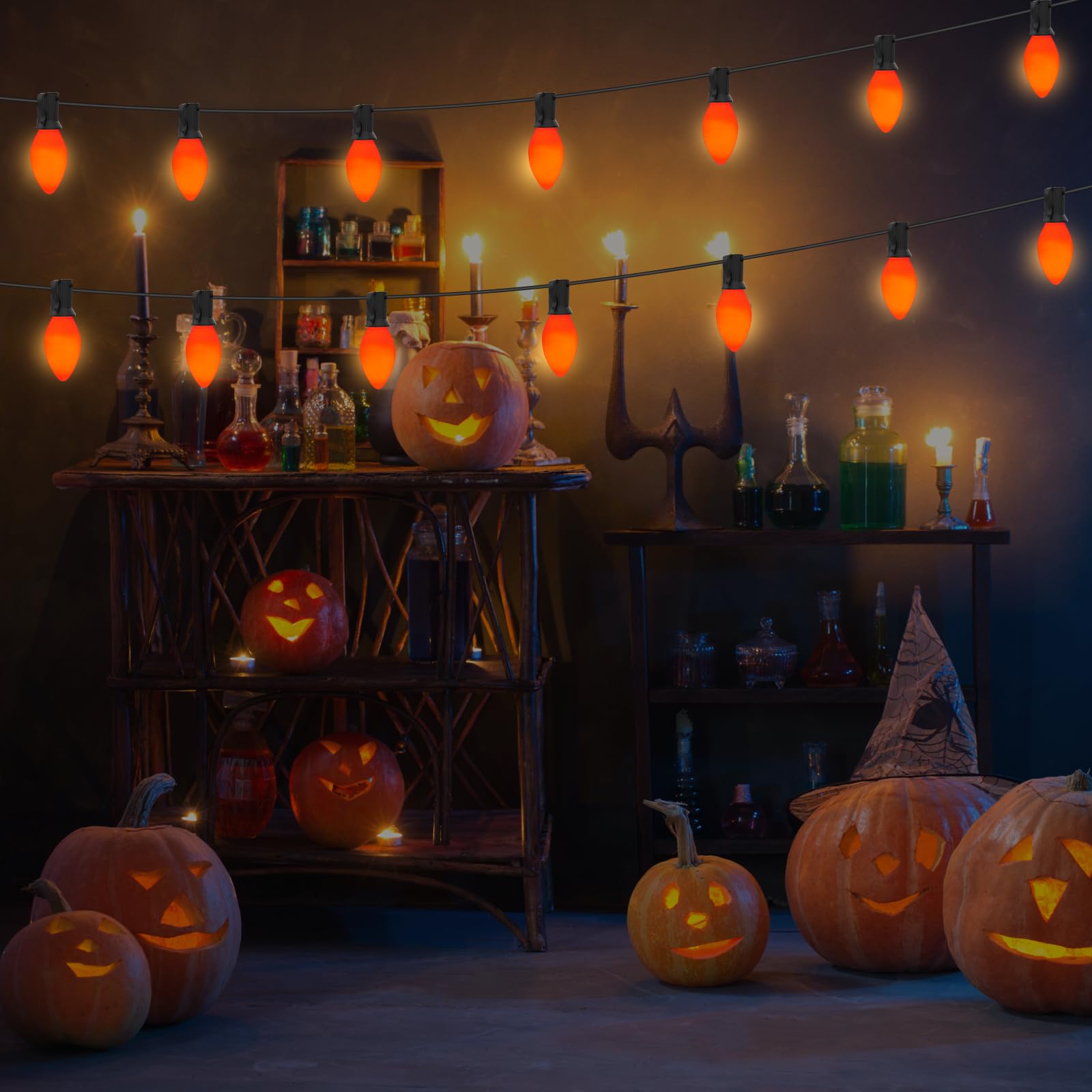 - Waterproof : C7 replacement bulbs are made of glass which is waterproof, making them ideal for outdoor indoor use, compatible with most C7/E12 socket outdoor string lights. You can confidently leave these halloween decoration string light bulbs on the tree, tent and many other occasions or events, Halloween, party, etc