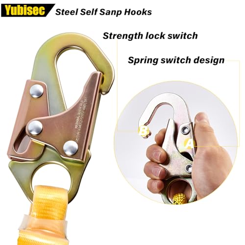 - ALLOY ROPE GRAB: Safety harness roofing rope come with double lock-locking screw mechanism and locking clip added two safeguards to your work environment.Its min. Breaking strength: 3600 lbs, meets ANSI Z359.1.The rope grab hook is adjustable, allowing you to easily move along the life rope