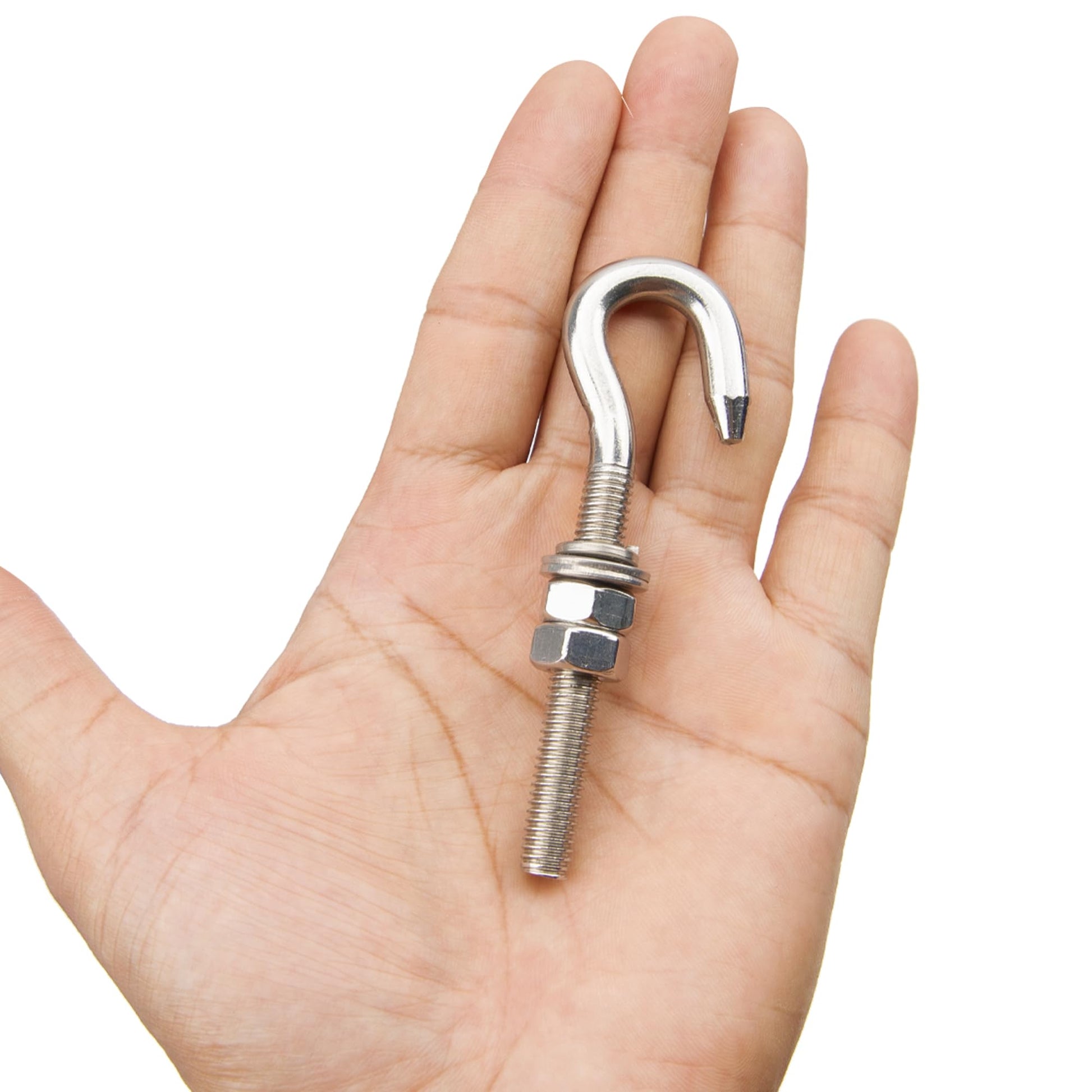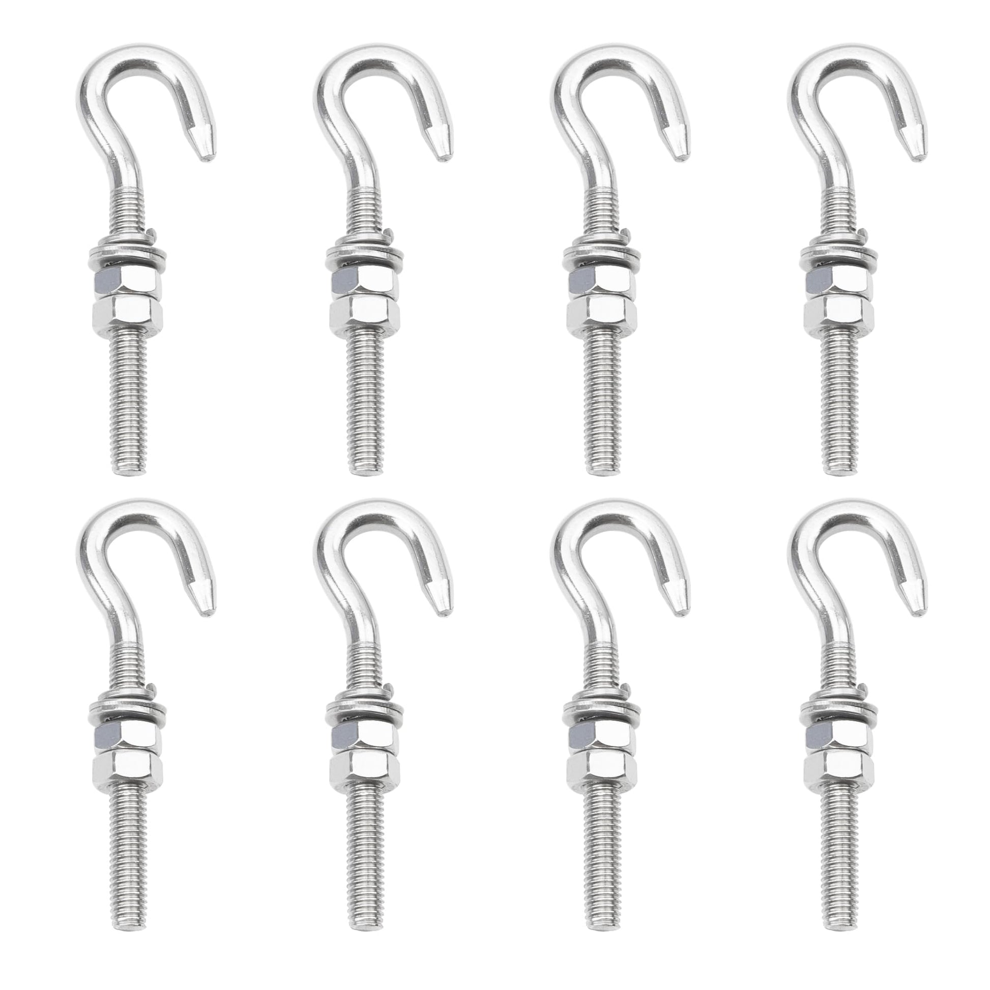 Rrina 8Pcs M8 Hook Bolt 304 Stainless Steel Eye Ring Screw-in Hooks with Washers Nut Metric Thread