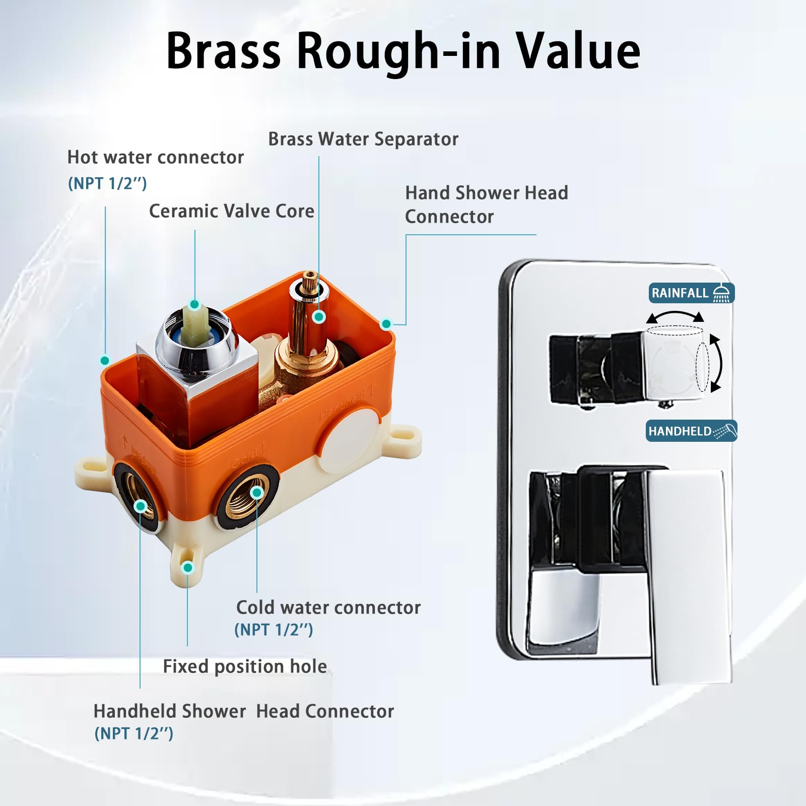 - 【Certified Pressure Balancing Box】: Your safety is our priority. Our silver shower system features a pressure balance valve cartridge that monitors water pressure balance. This innovative feature protects you from scalding caused by sudden changes in water temperature. Adjust the temperature limit according to the enclosed instructions to ensure a comfortable and safe shower experience. The recommended water temperature for a bathtub or shower is between 90°F and 110°F